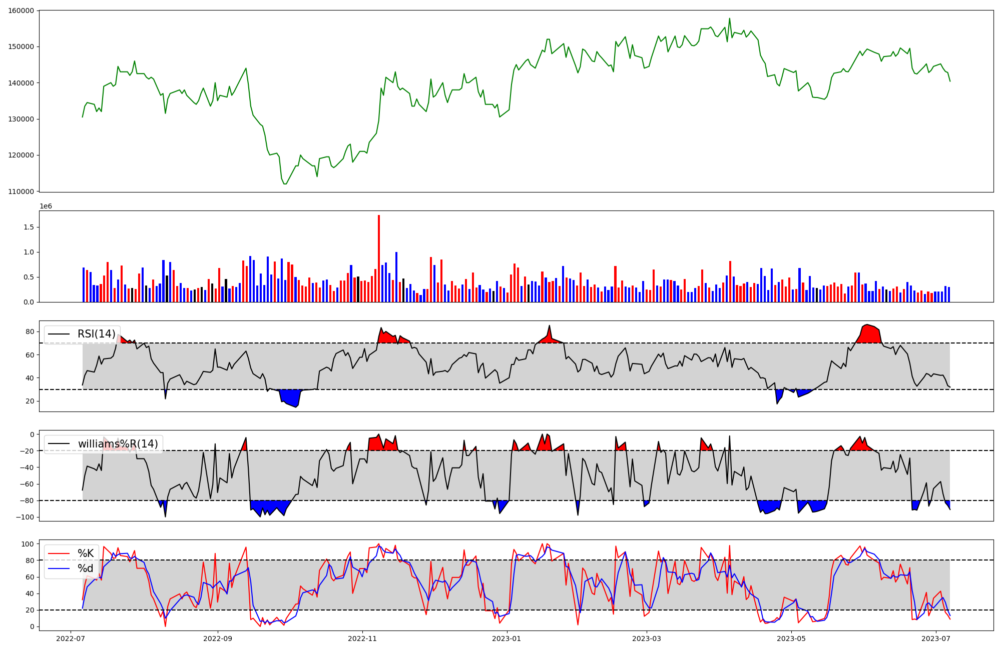 | RSI | Williams %R | stochastic(%K) | |