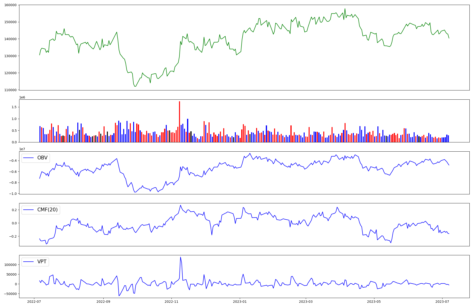 | OBV | CMF | VPT | |