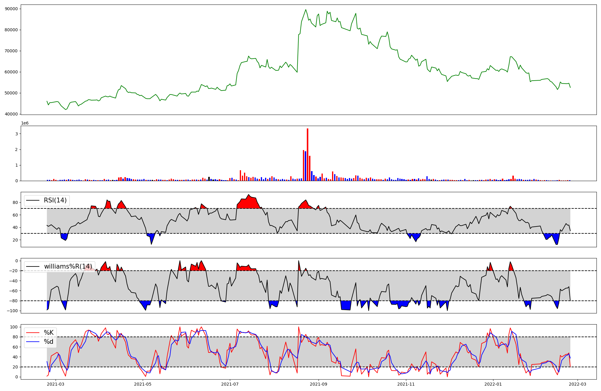 RSI Williams %R stochastic(%K)