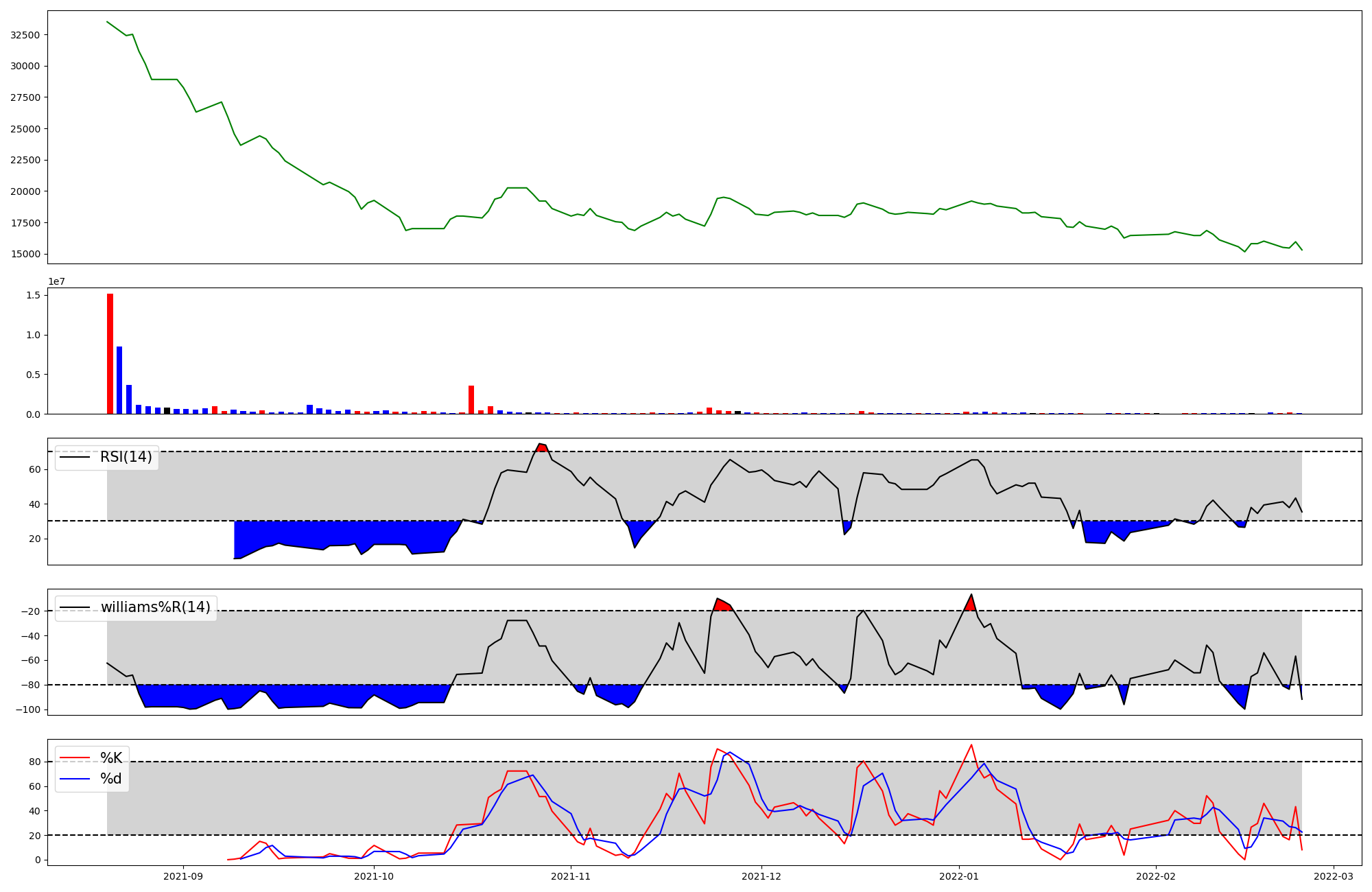 | RSI | Williams %R | stochastic(%K) | |