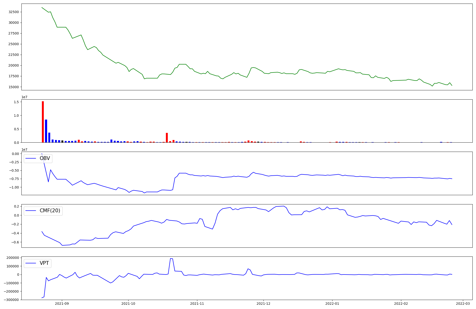 | OBV | CMF | VPT | |