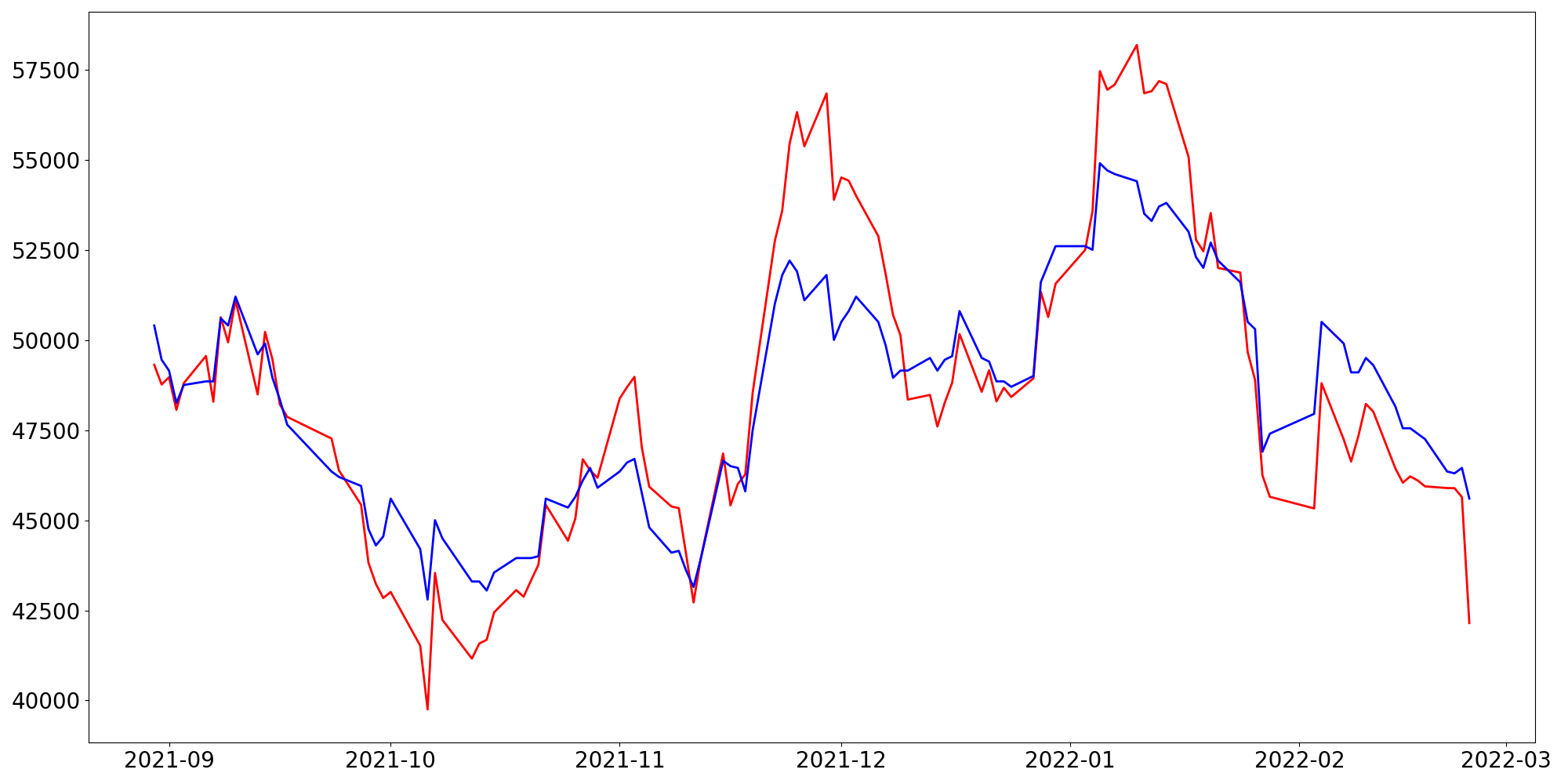 [ - : 실제값(종가) / - : 예측값(종가) ]