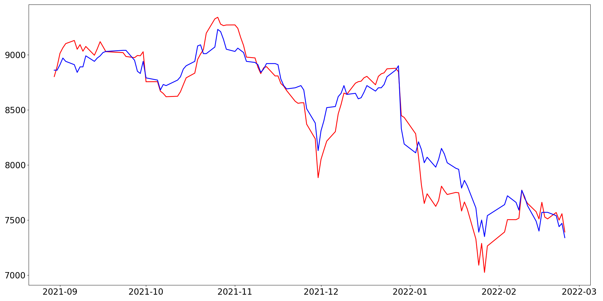 [ - : 실제값(종가) / - : 예측값(종가) ]