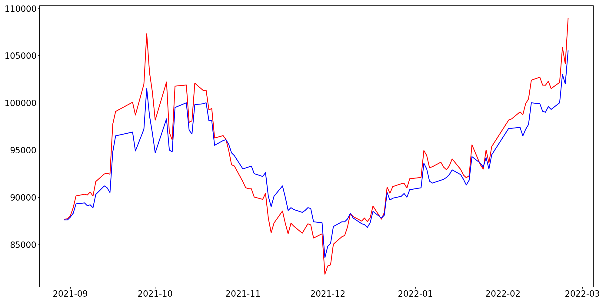 [ - : 실제값(종가) / - : 예측값(종가) ]