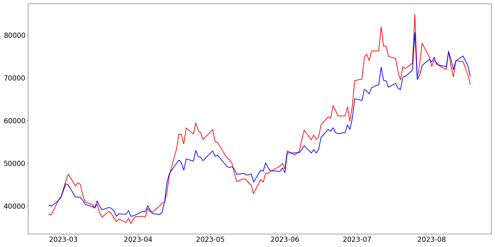 [ - : 실제값(종가) / - : 예측값(종가) ]