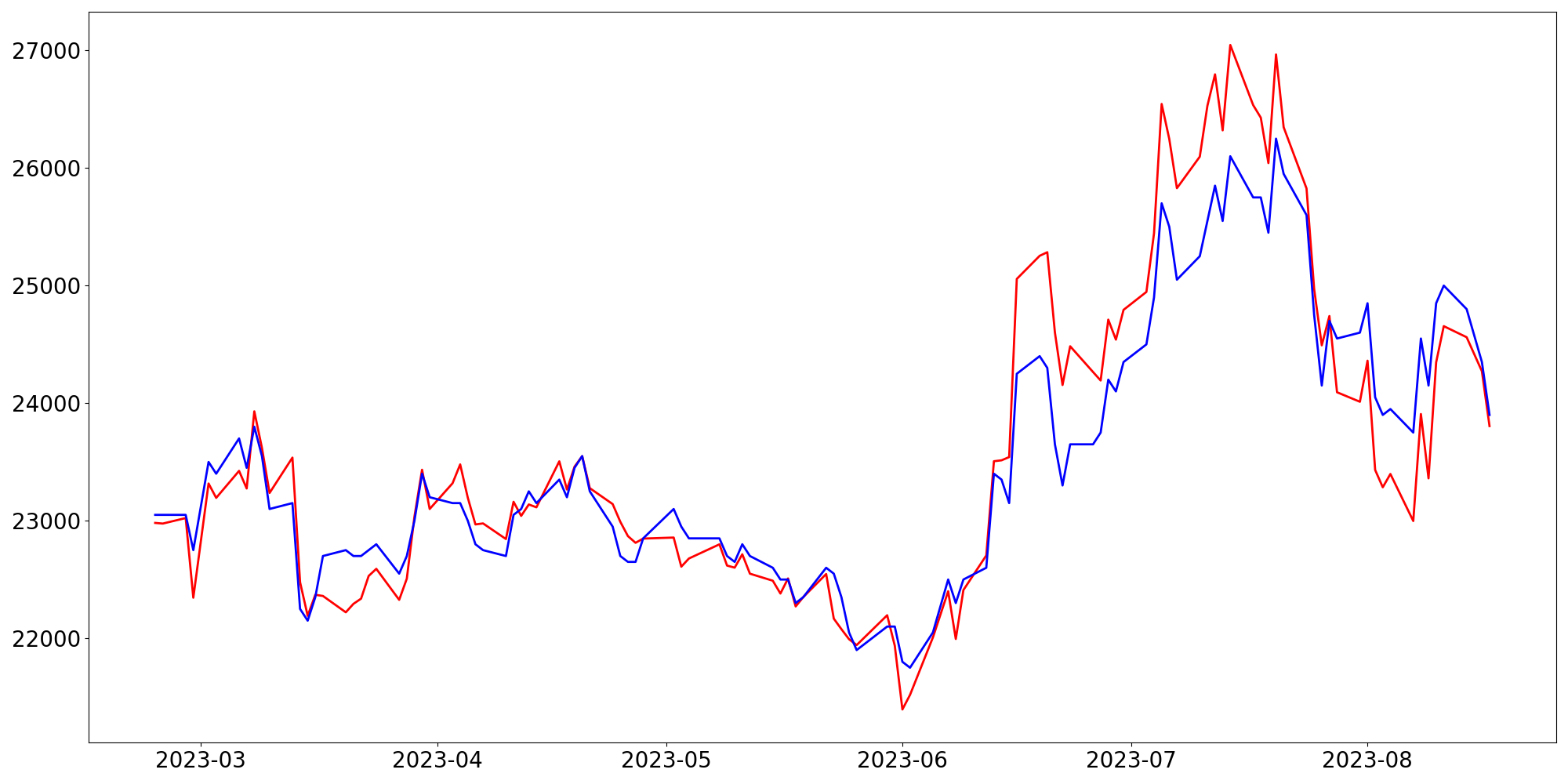 [ - : 실제값(종가) / - : 예측값(종가) ]