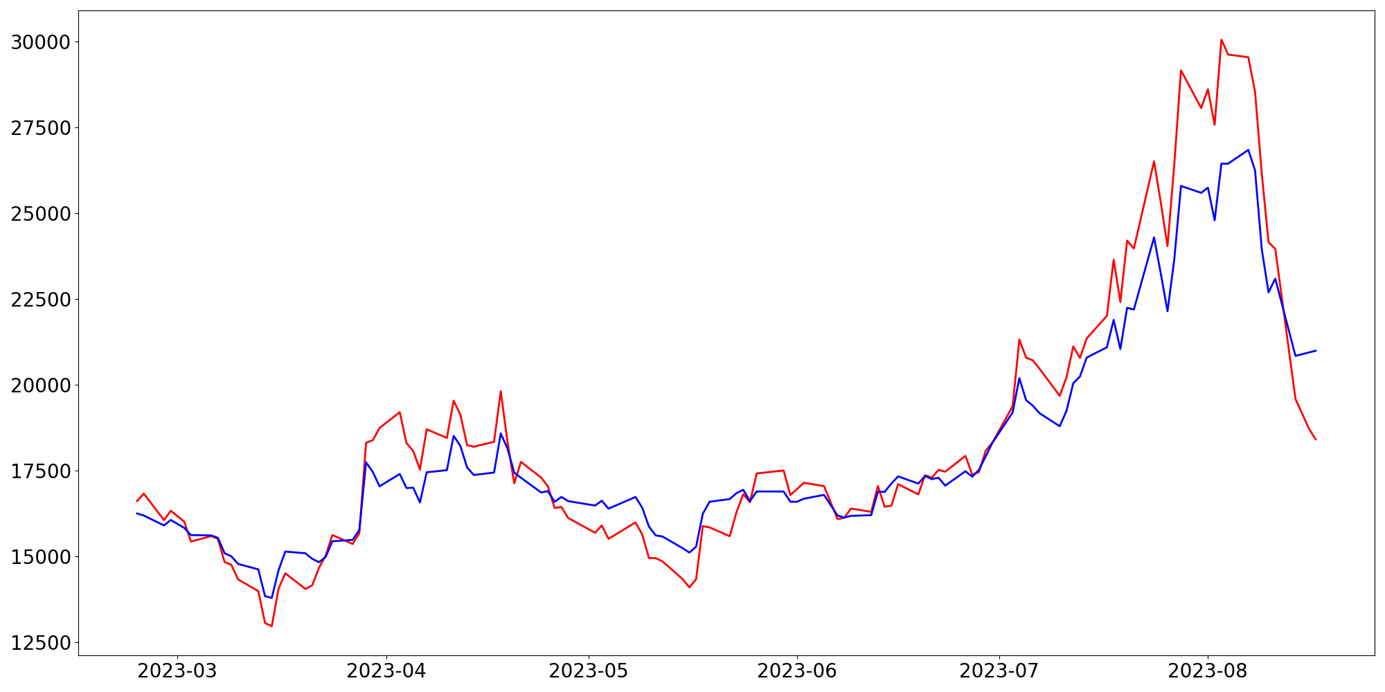 [ - : 실제값(종가) / - : 예측값(종가) ]