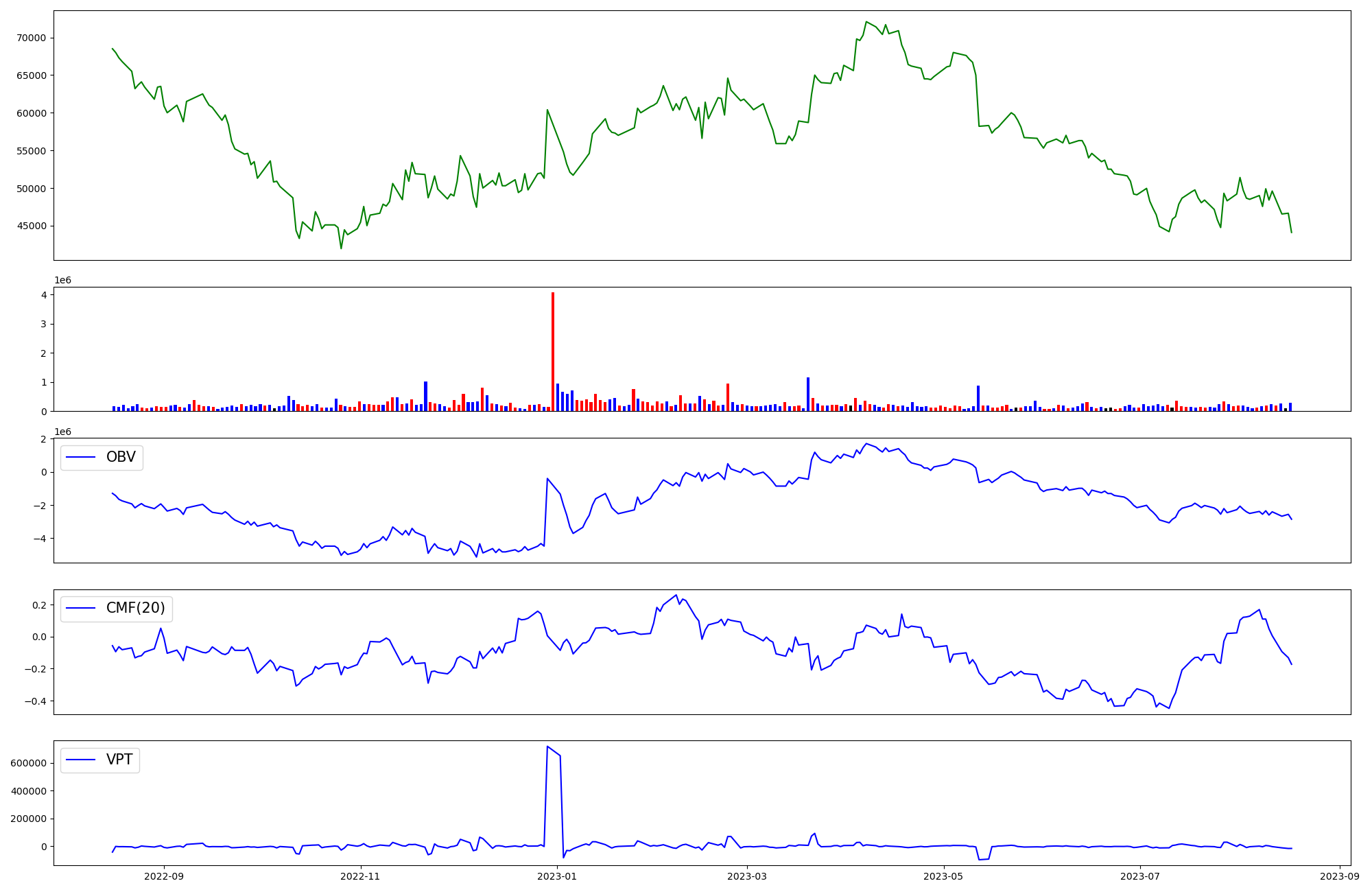 | OBV | CMF | VPT | |