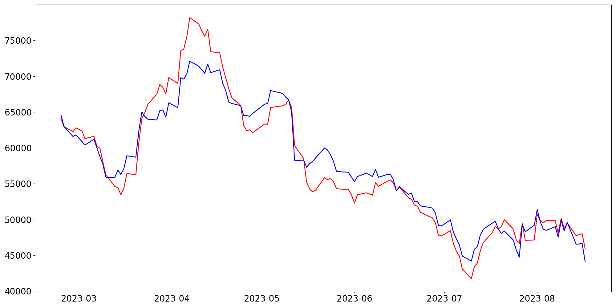 [ - : 실제값(종가) / - : 예측값(종가) ]
