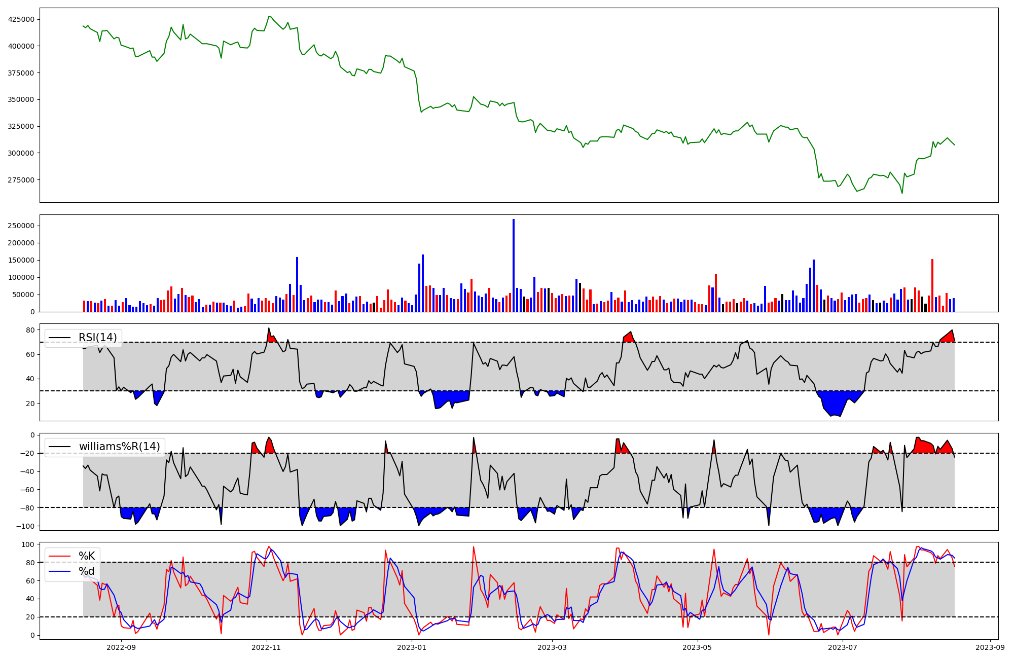 | RSI | Williams %R | stochastic(%K) | |