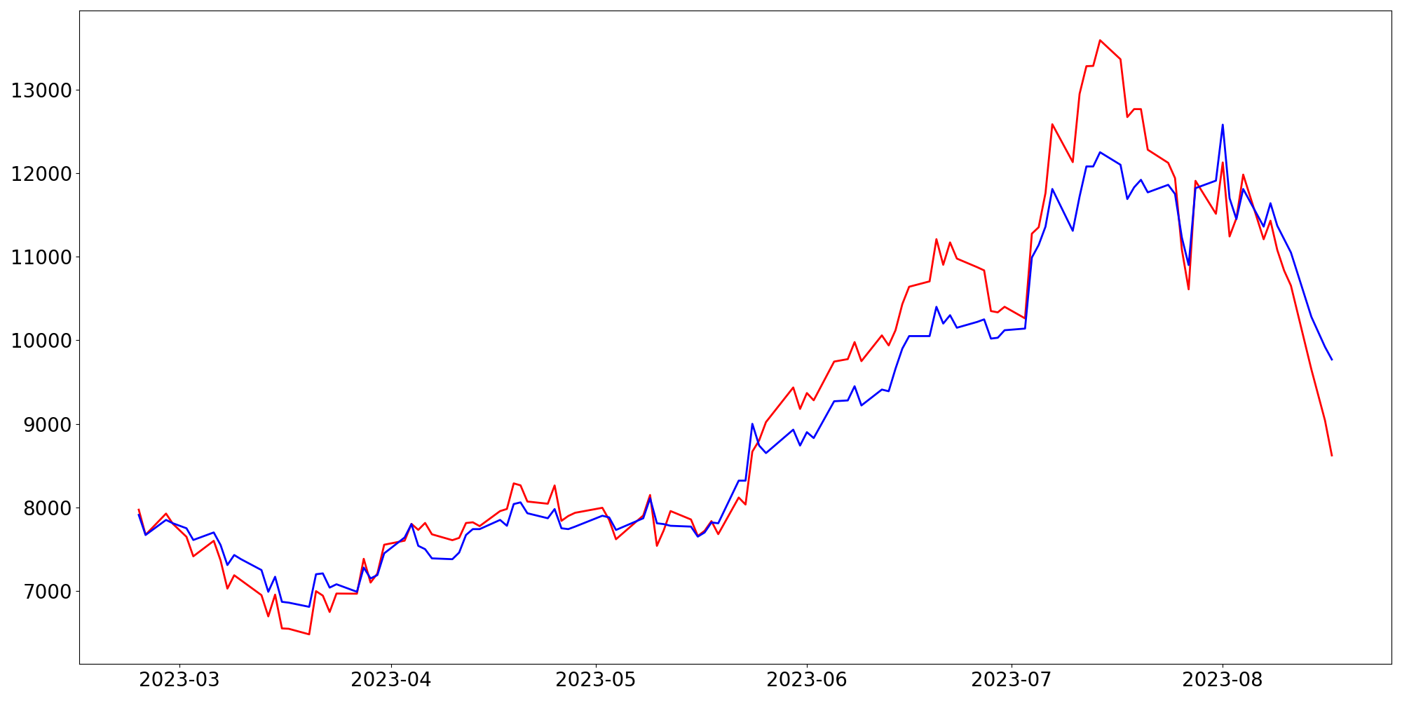 [ - : 실제값(종가) / - : 예측값(종가) ]