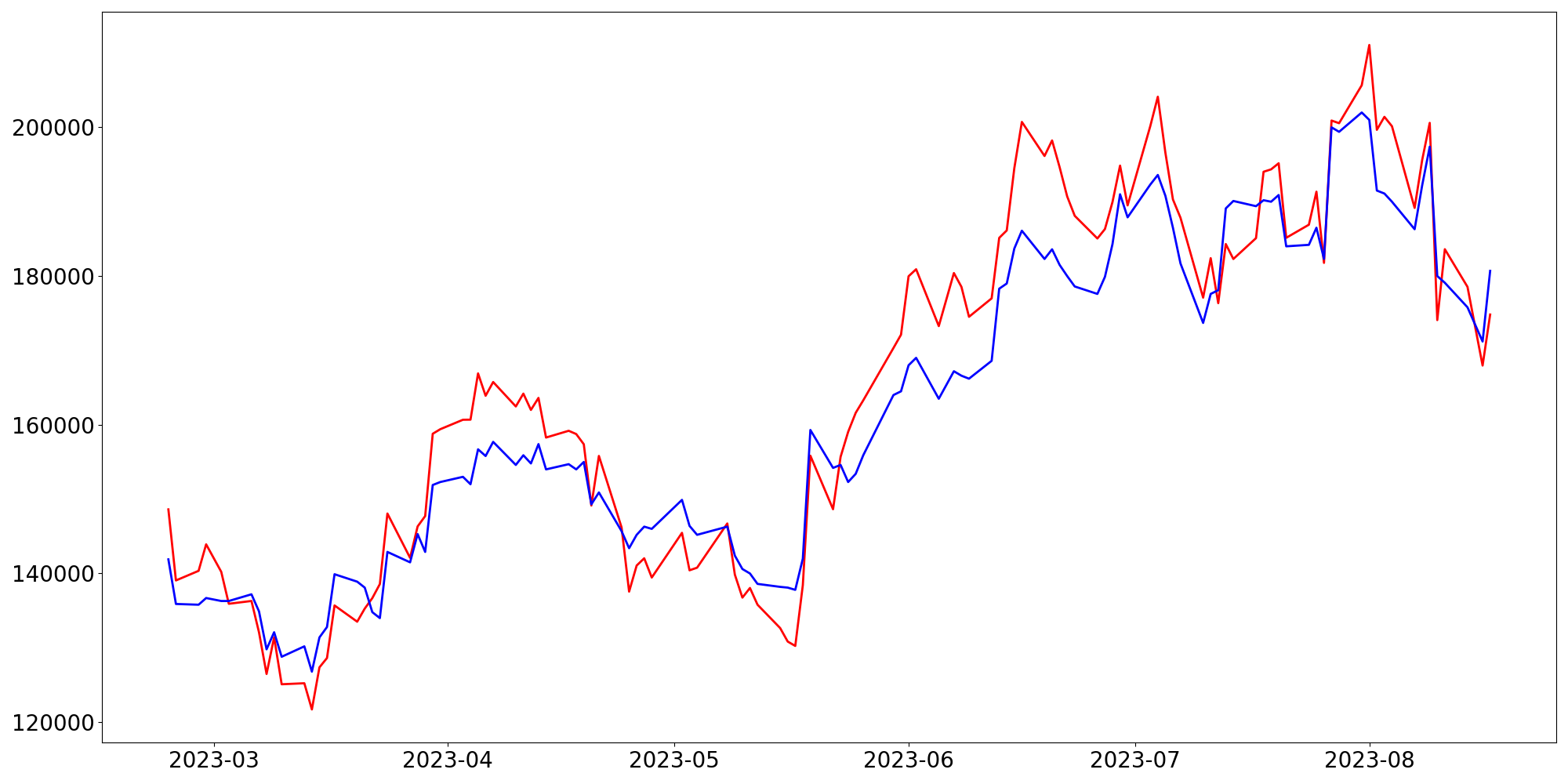 [ - : 실제값(종가) / - : 예측값(종가) ]