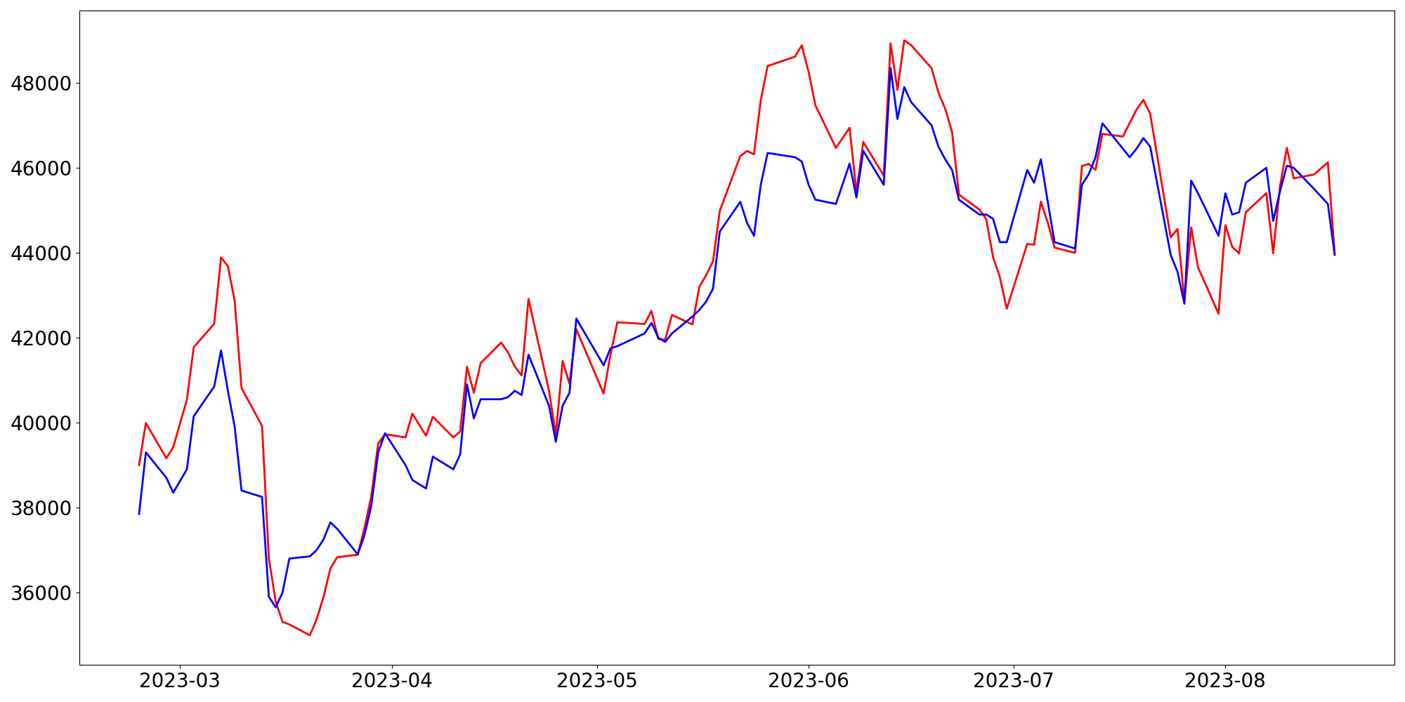 [ - : 실제값(종가) / - : 예측값(종가) ]