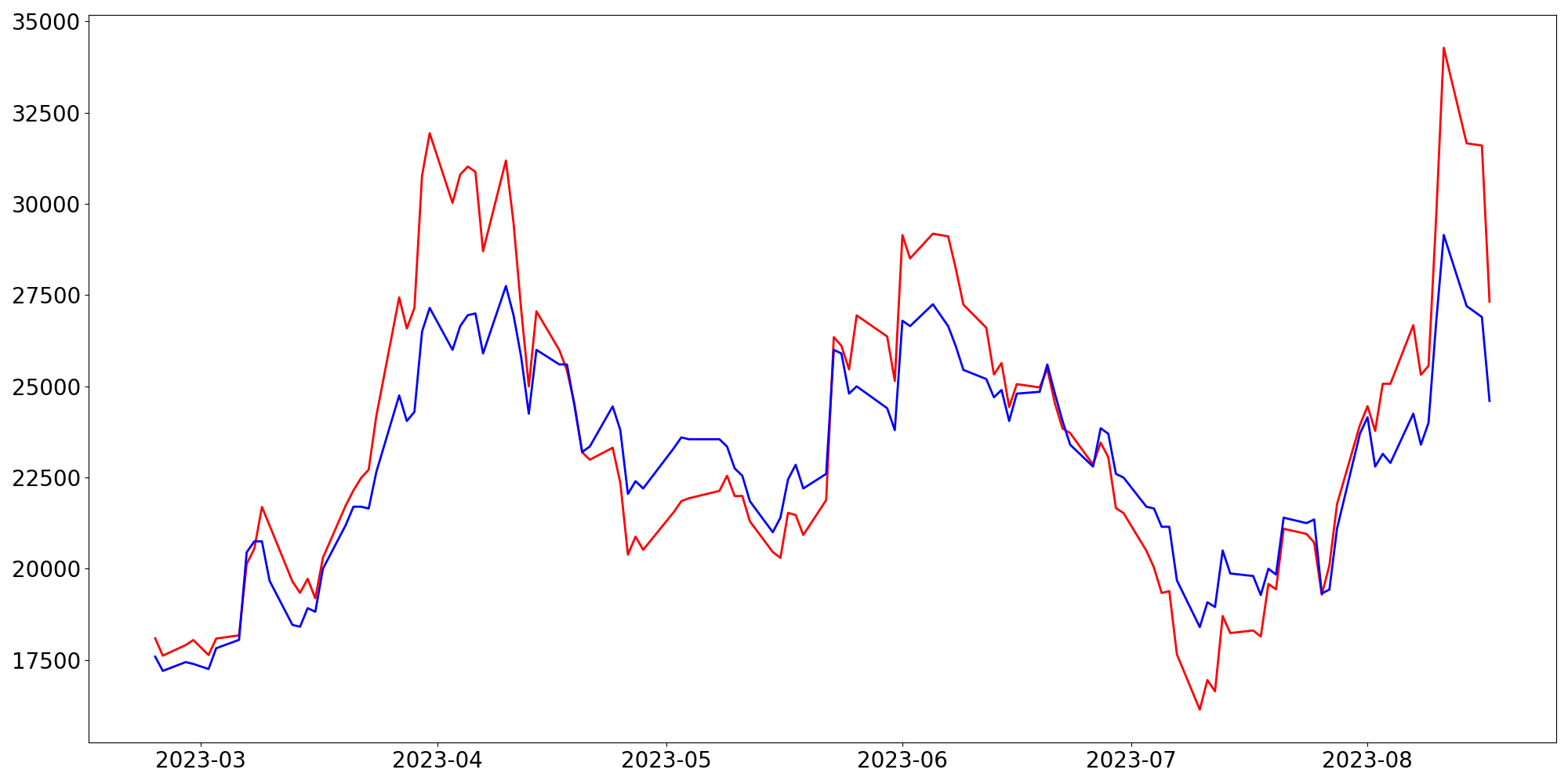 [ - : 실제값(종가) / - : 예측값(종가) ]