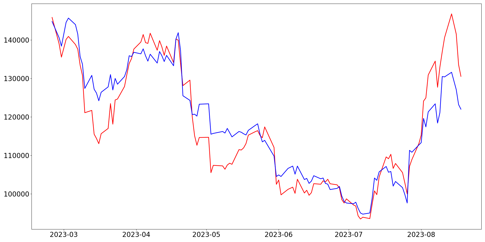 [ - : 실제값(종가) / - : 예측값(종가) ]