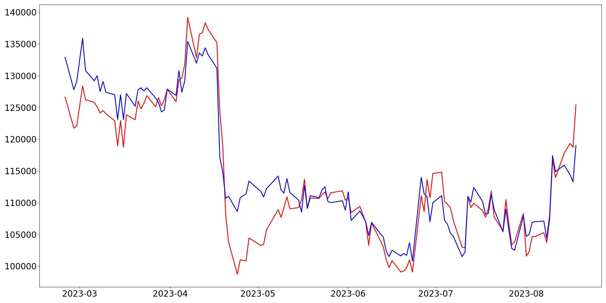 [ - : 실제값(종가) / - : 예측값(종가) ]