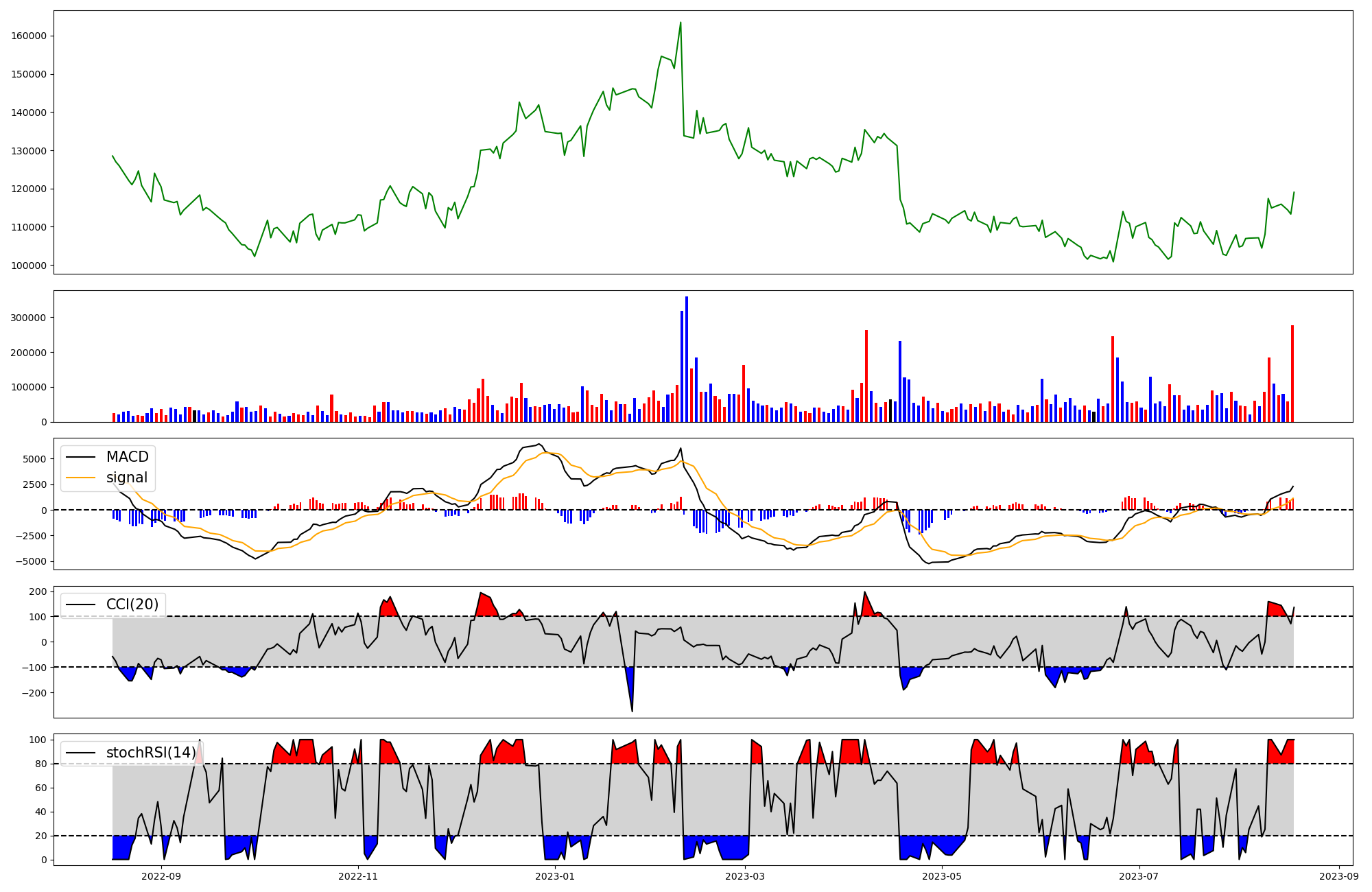 □ 오늘의 종가 : 119,000 (+5,700, +5.03%)