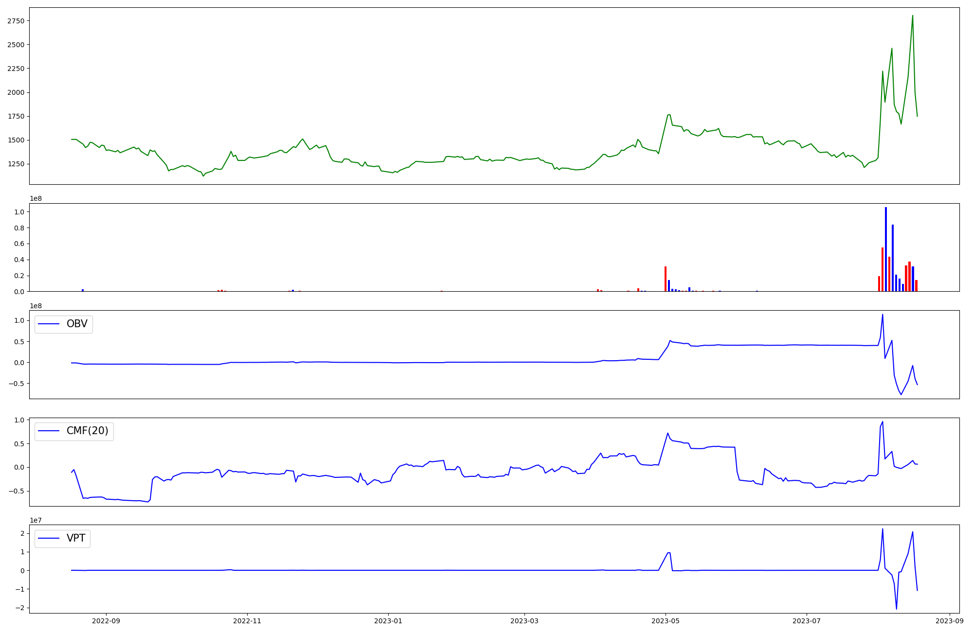 | OBV | CMF | VPT | |