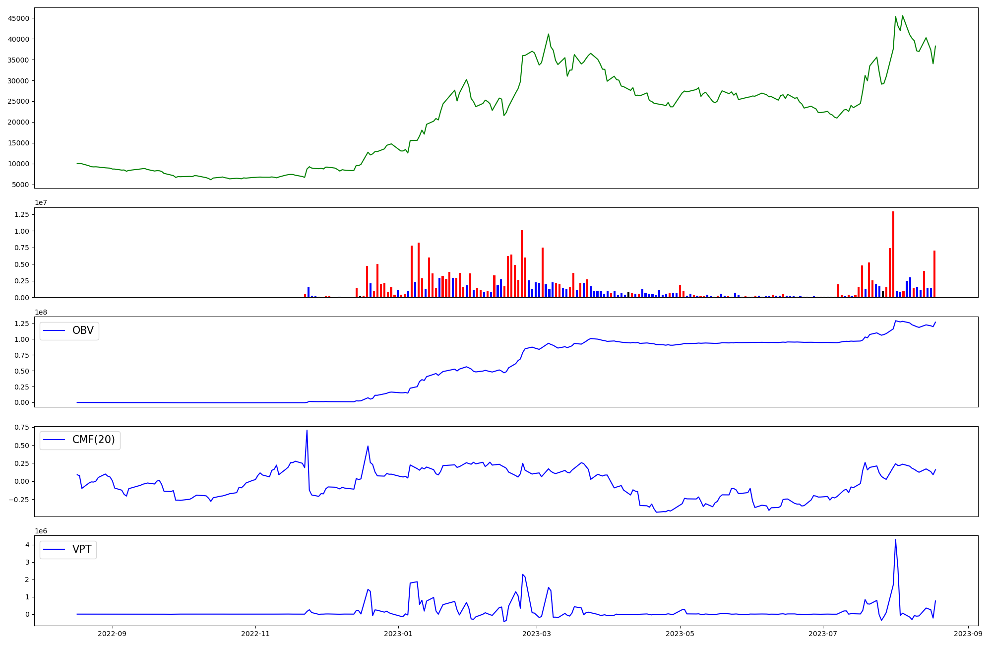 | OBV | CMF | VPT | |
