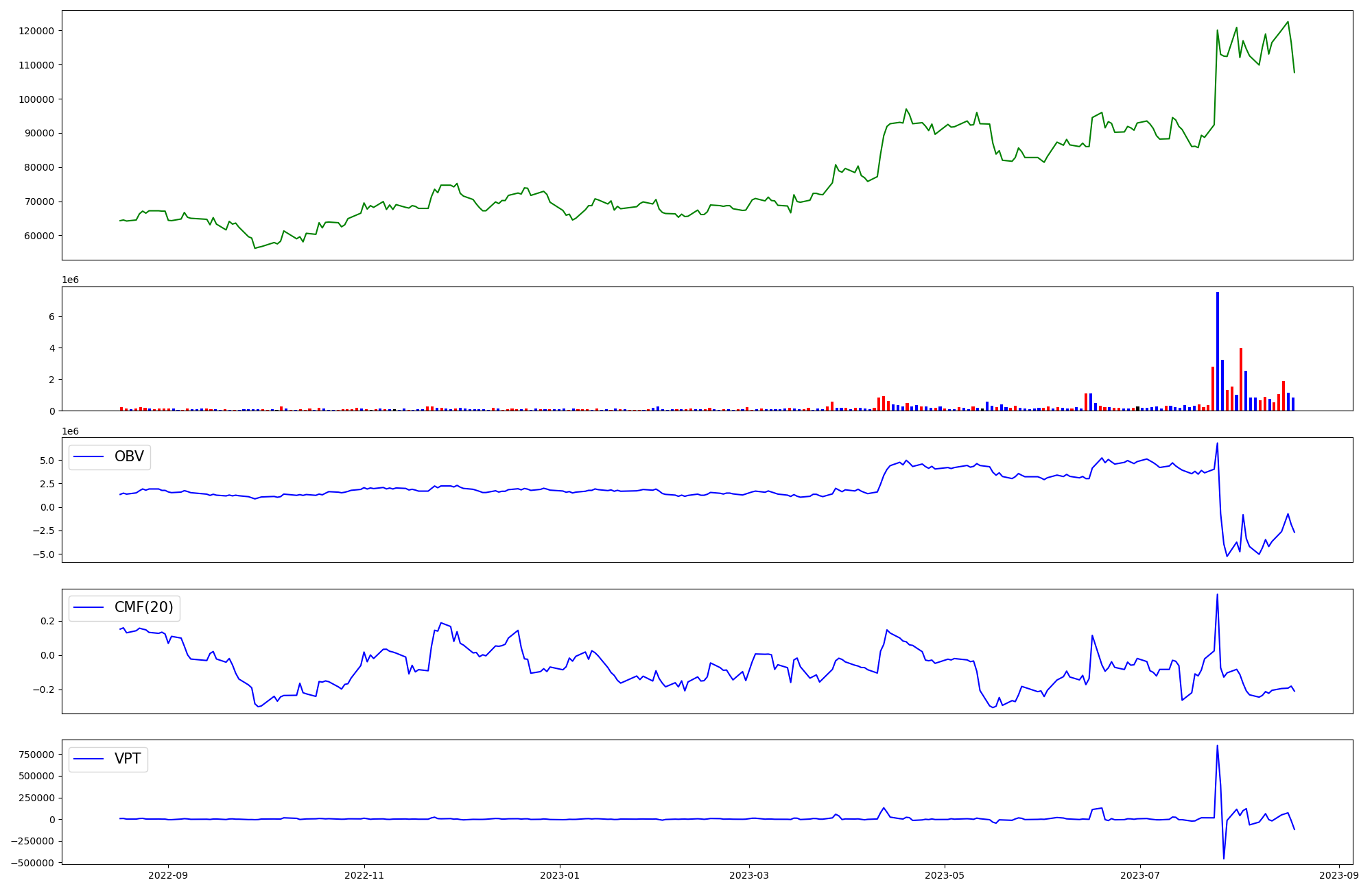 | OBV | CMF | VPT | |
