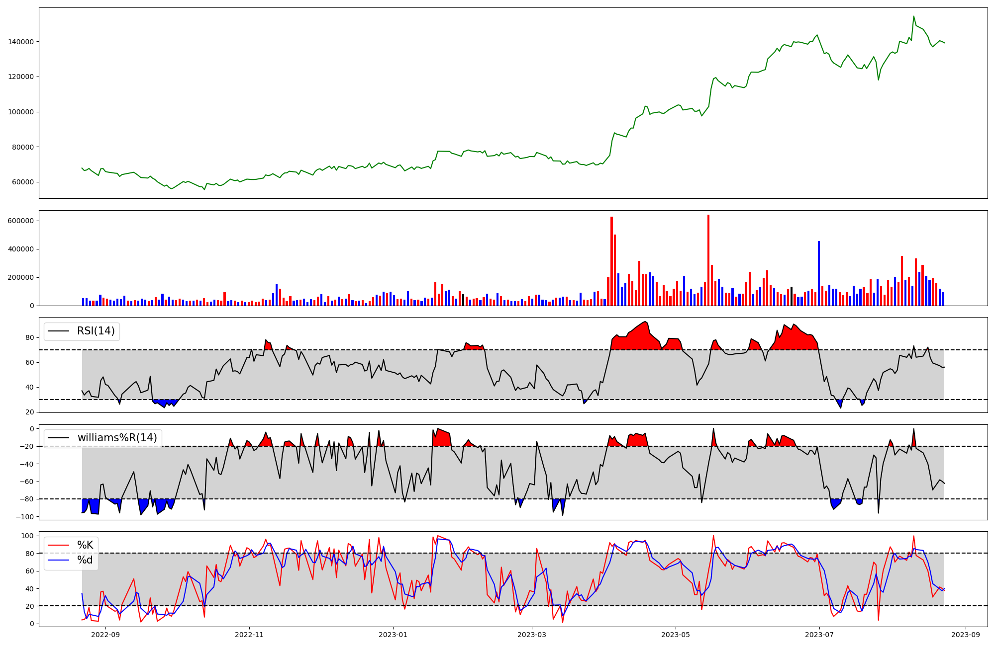 | RSI | Williams %R | stochastic(%K) | |