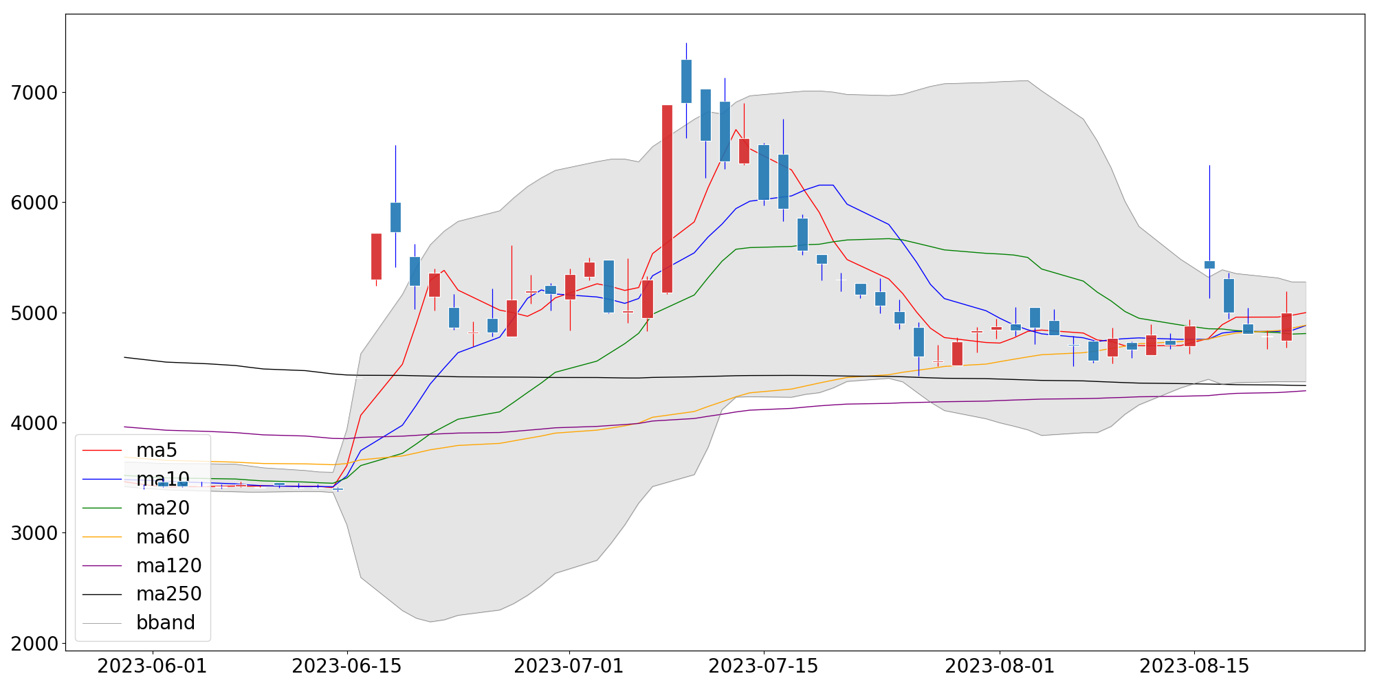 □ 오늘의 종가 : 5,000 (+215, +4.49%)
