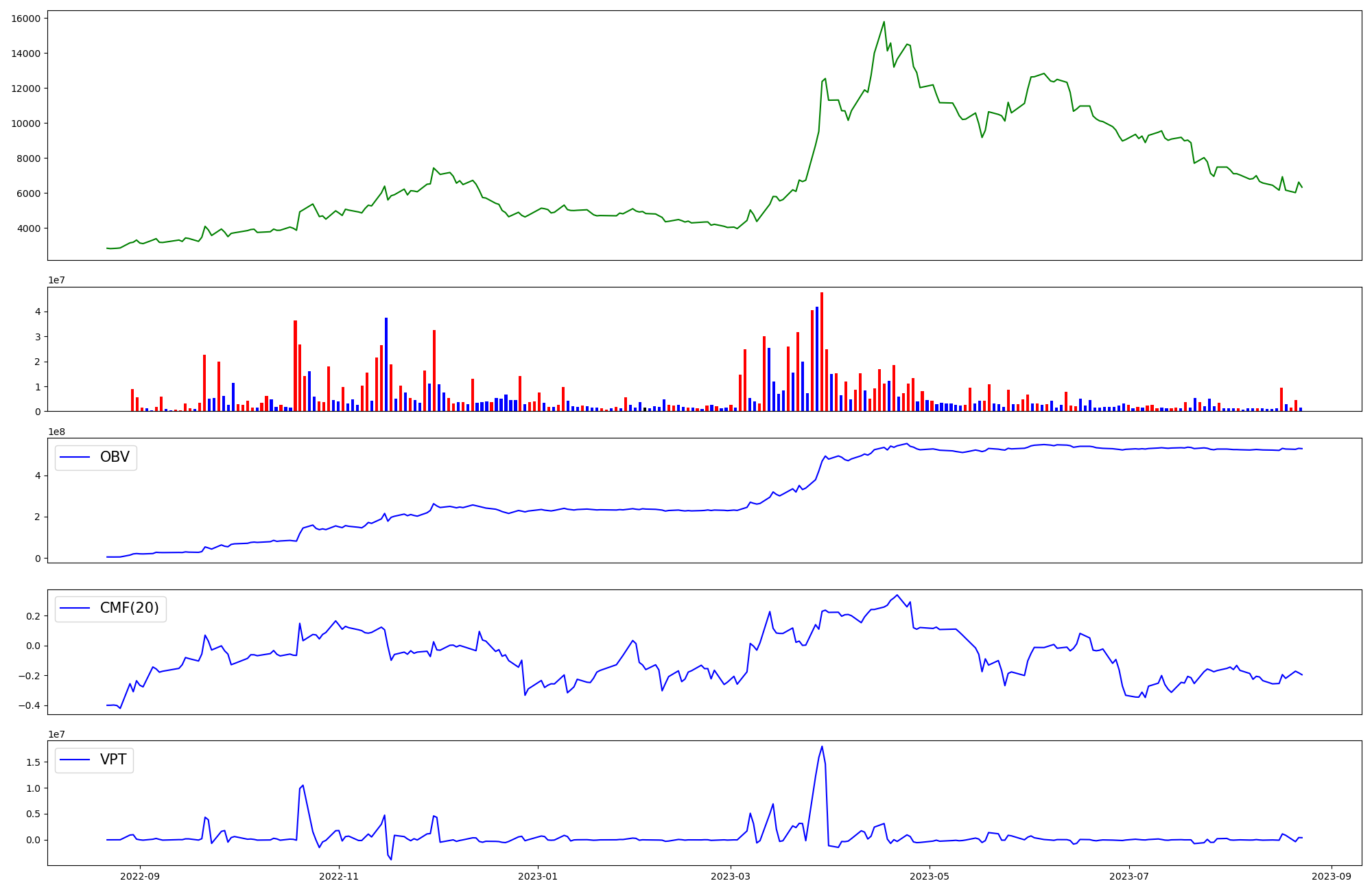 | OBV | CMF | VPT | |