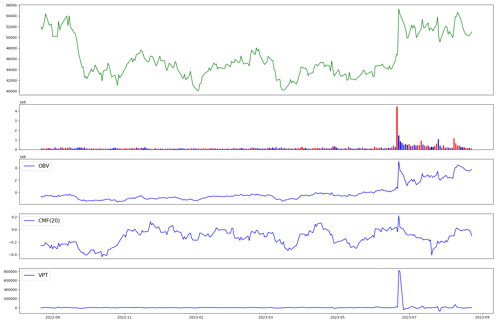 | OBV | CMF | VPT | |