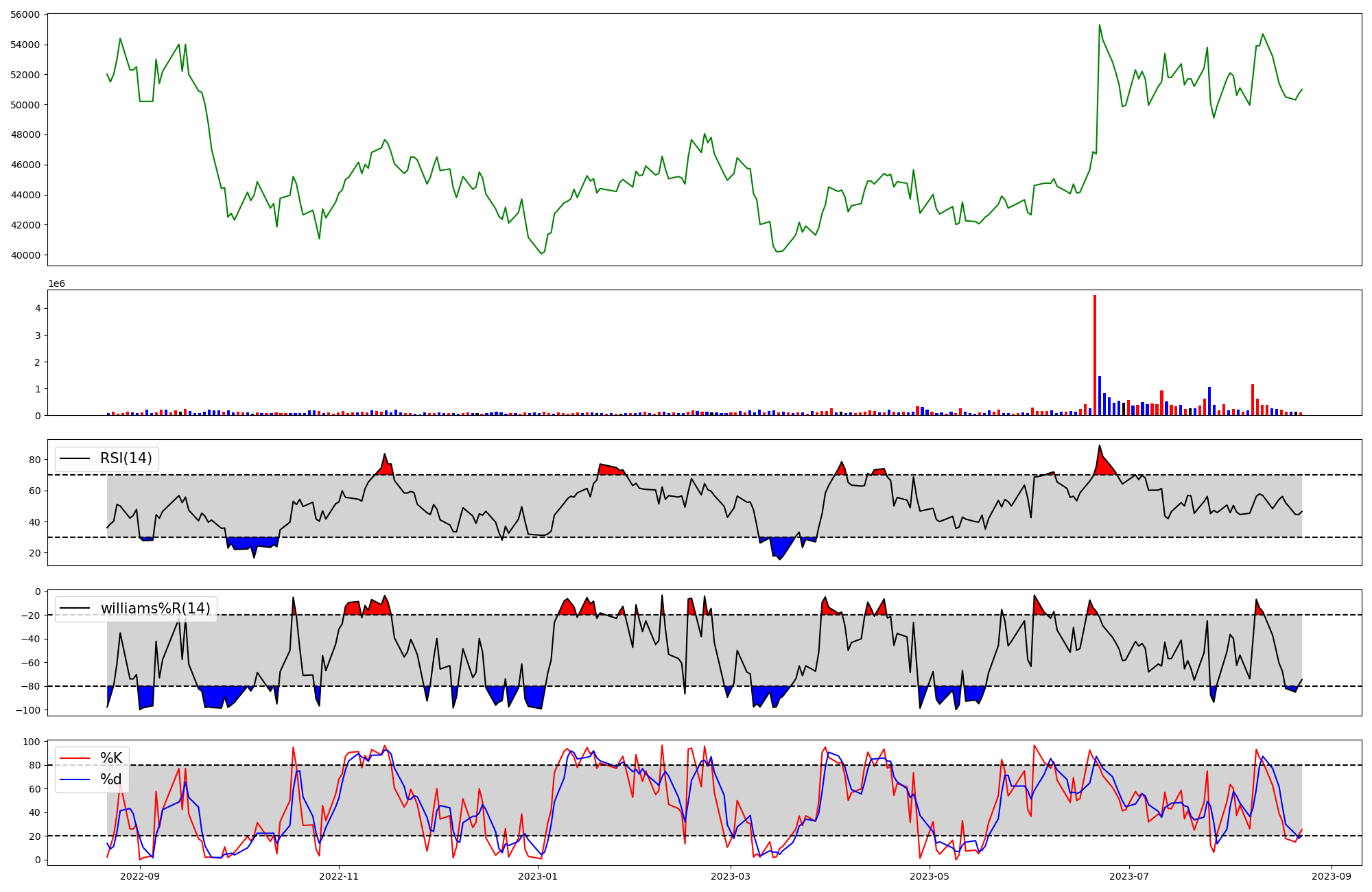 | RSI | Williams %R | stochastic(%K) | |