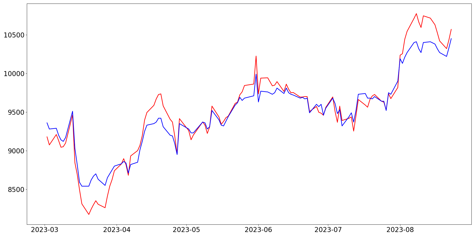 [ - : 실제값(종가) / - : 예측값(종가) ]