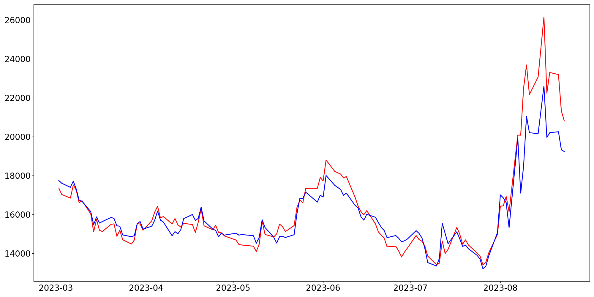 [ - : 실제값(종가) / - : 예측값(종가) ]