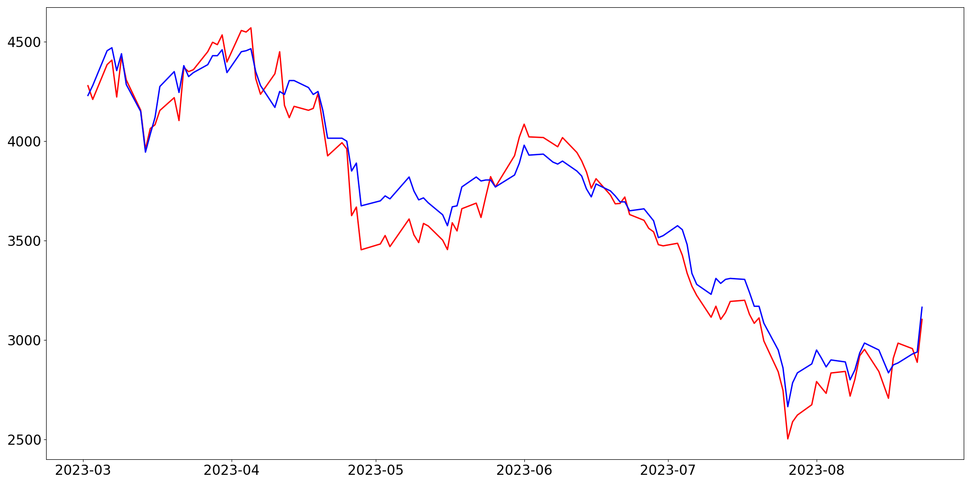 [ - : 실제값(종가) / - : 예측값(종가) ]