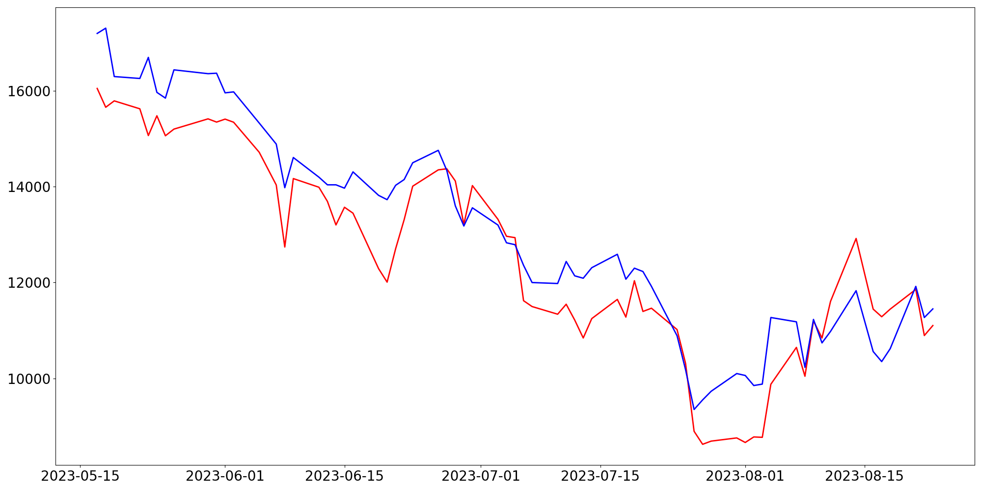 [ - : 실제값(종가) / - : 예측값(종가) ]