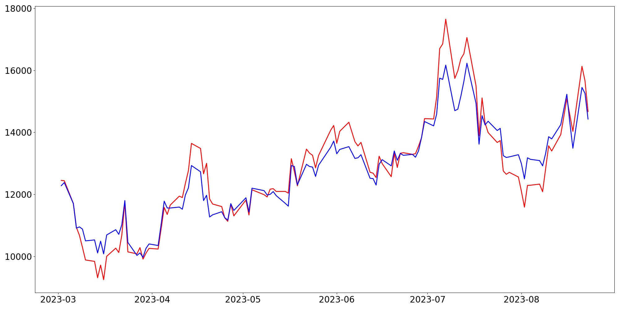 [ - : 실제값(종가) / - : 예측값(종가) ]