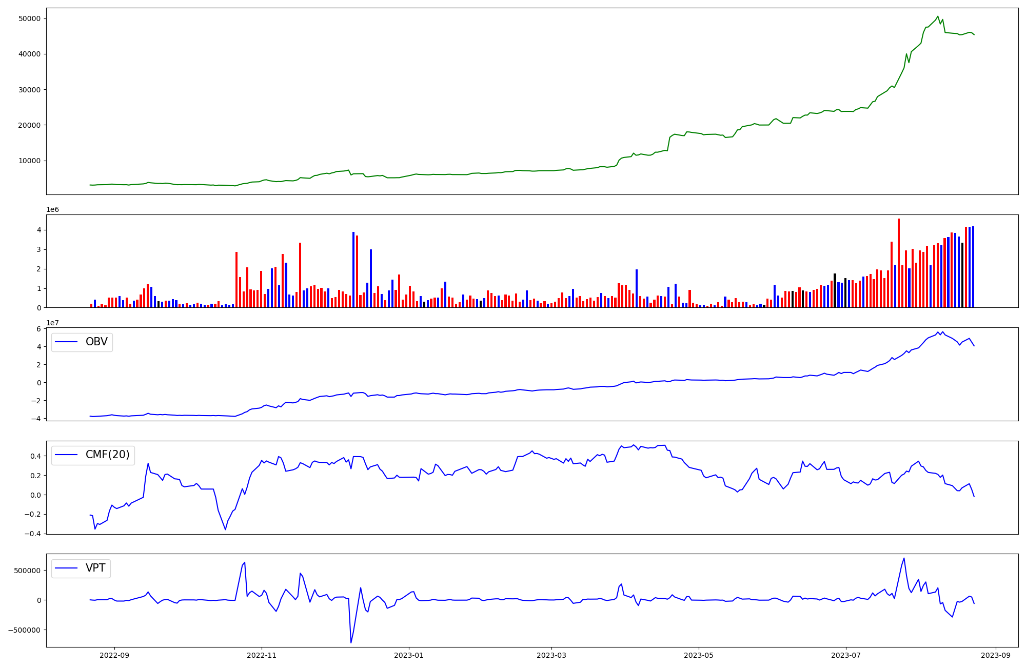 | OBV | CMF | VPT | |
