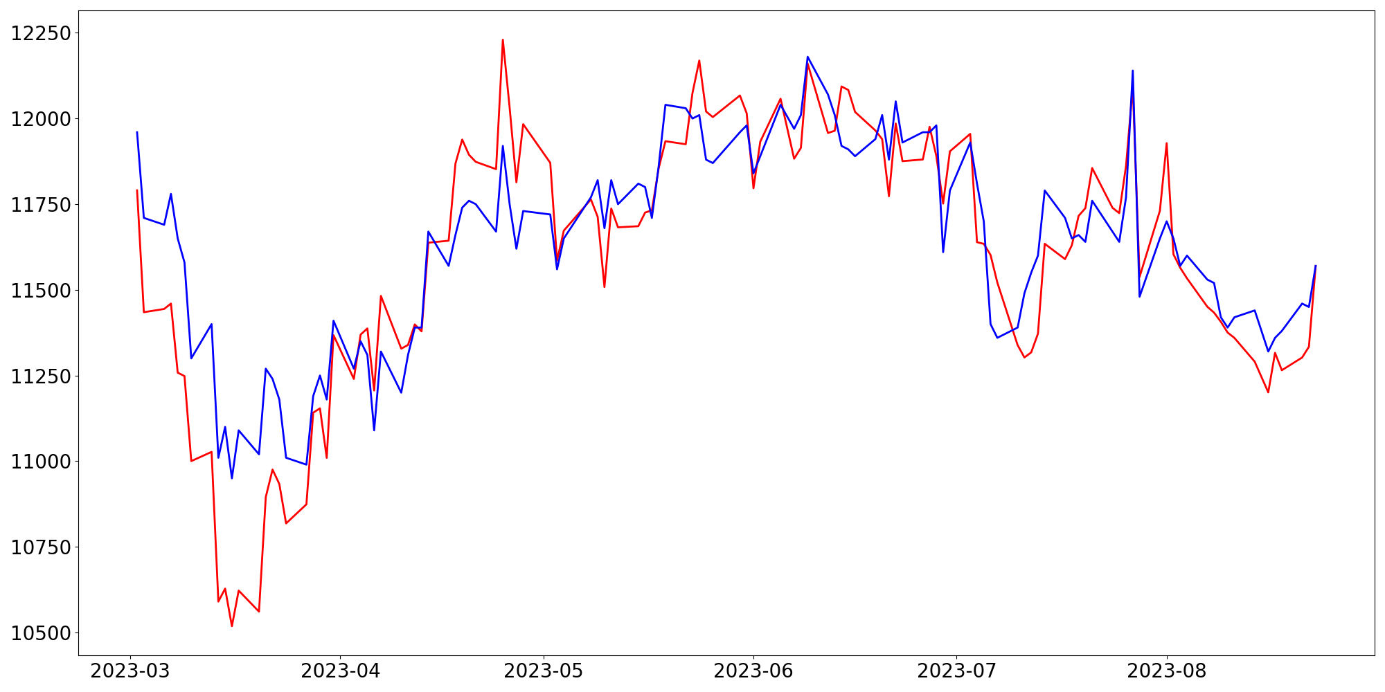 [ - : 실제값(종가) / - : 예측값(종가) ]