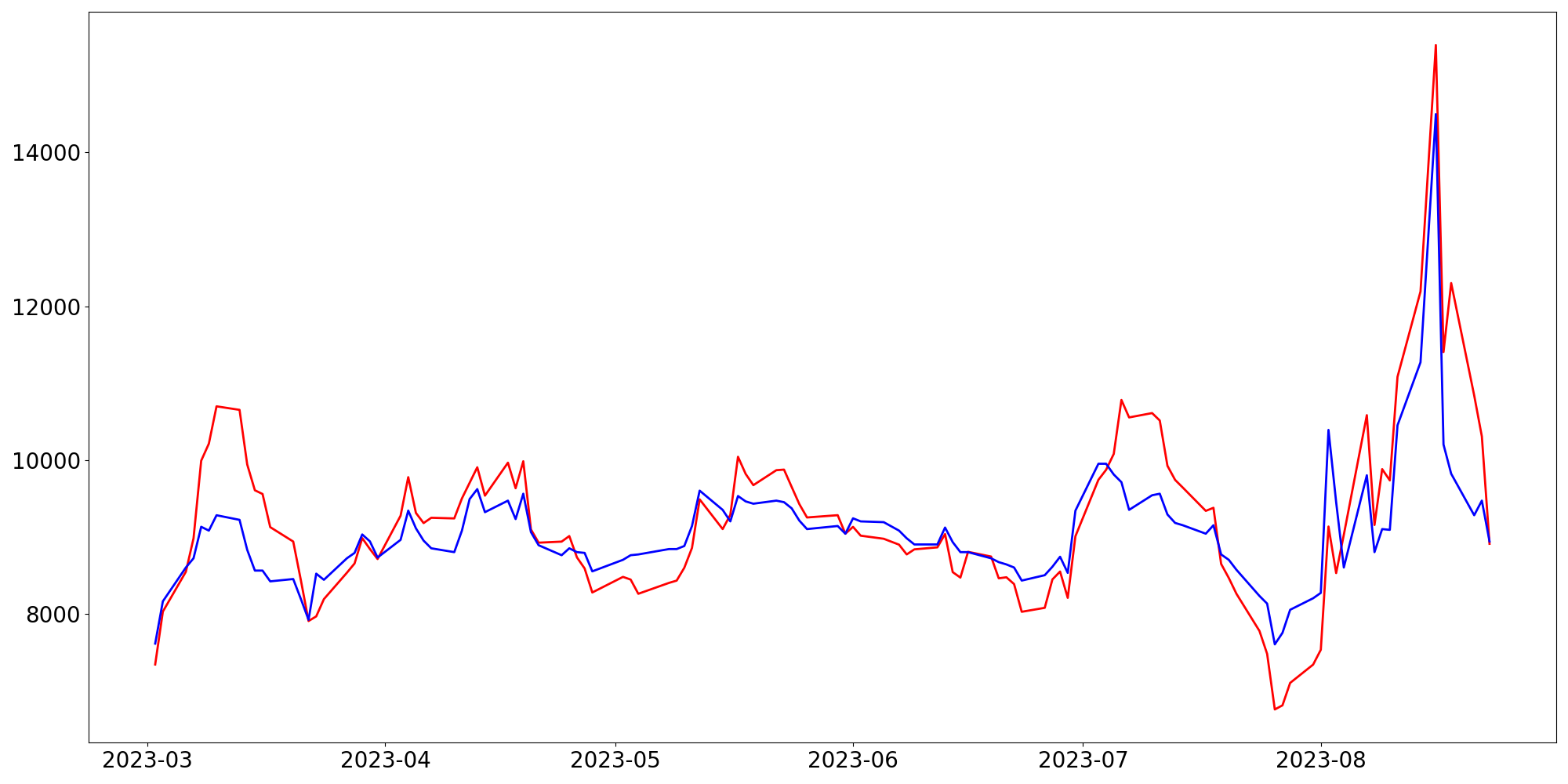 [ - : 실제값(종가) / - : 예측값(종가) ]
