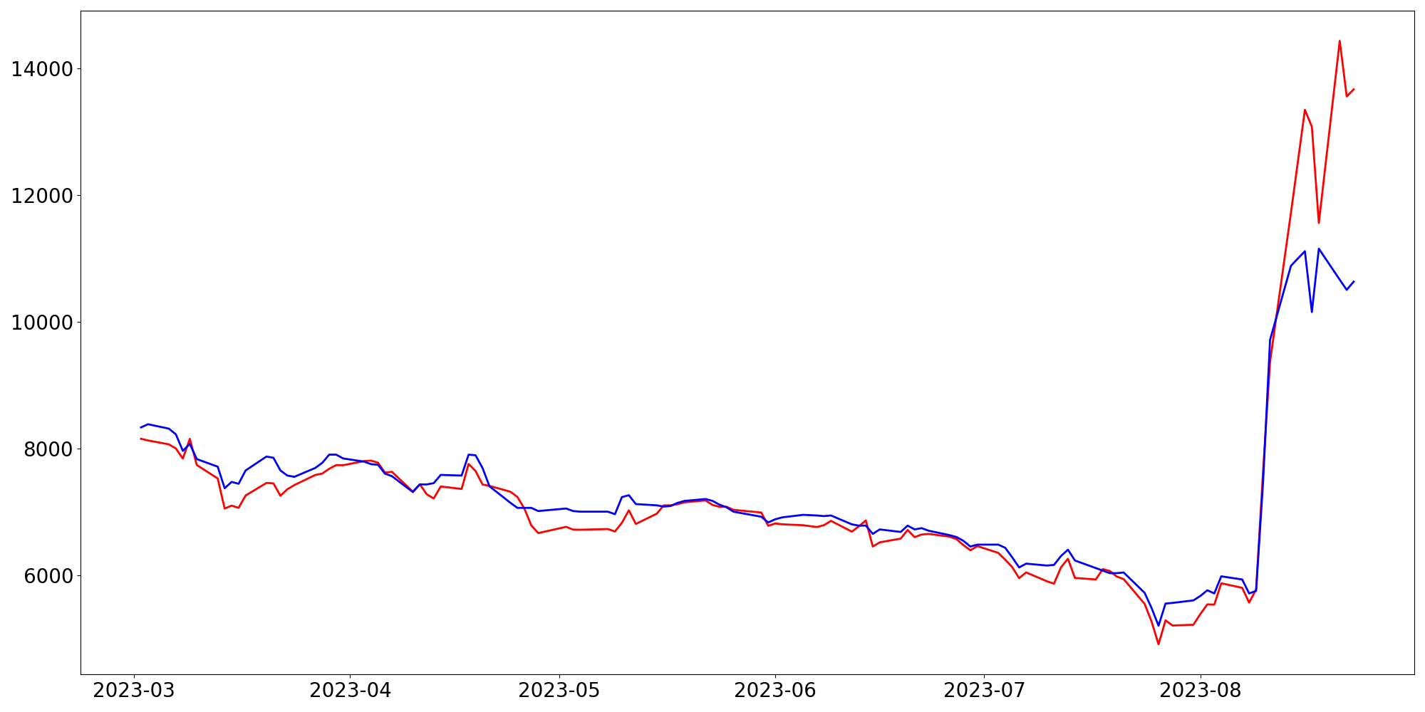 [ - : 실제값(종가) / - : 예측값(종가) ]