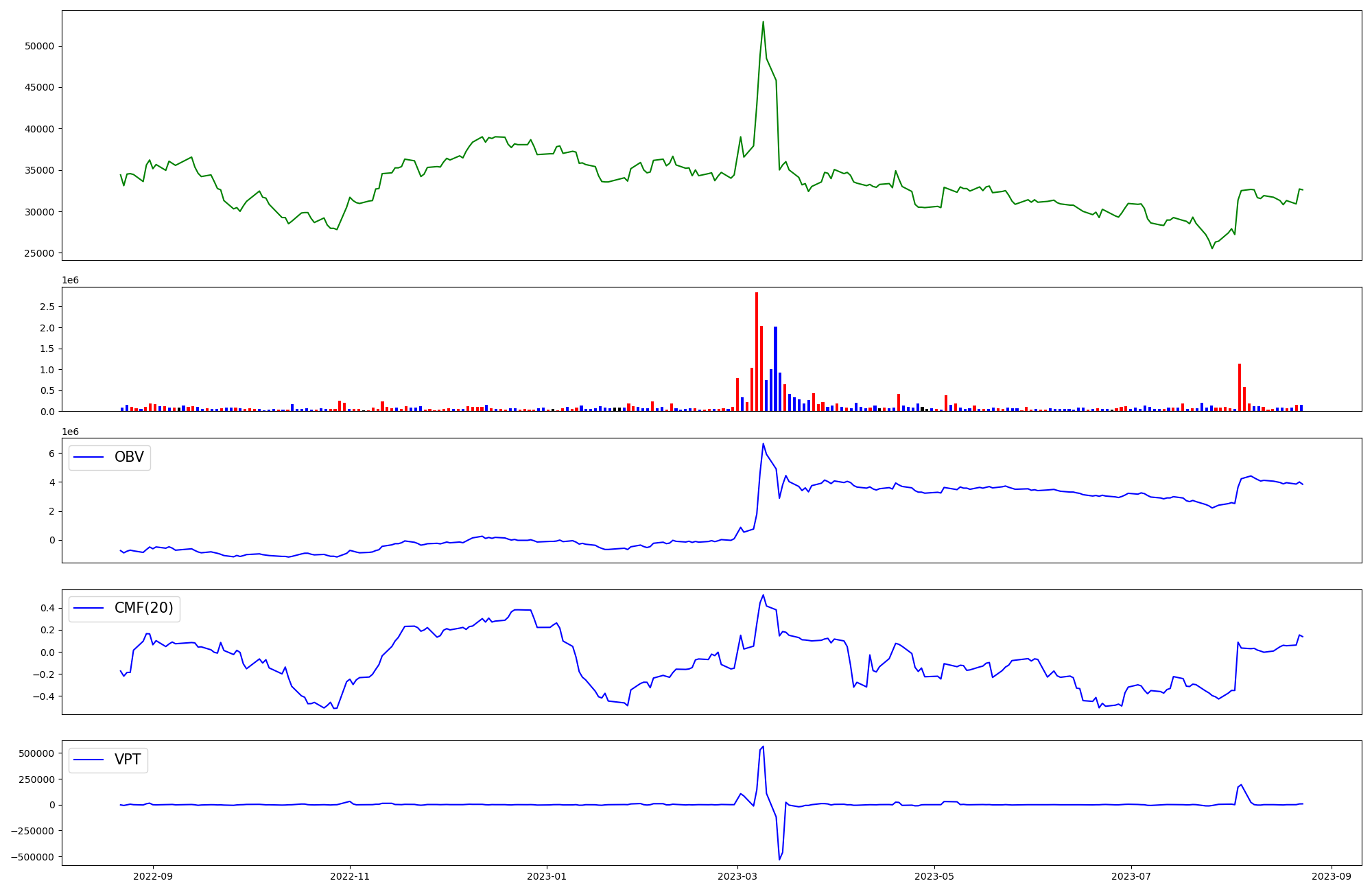 | OBV | CMF | VPT | |