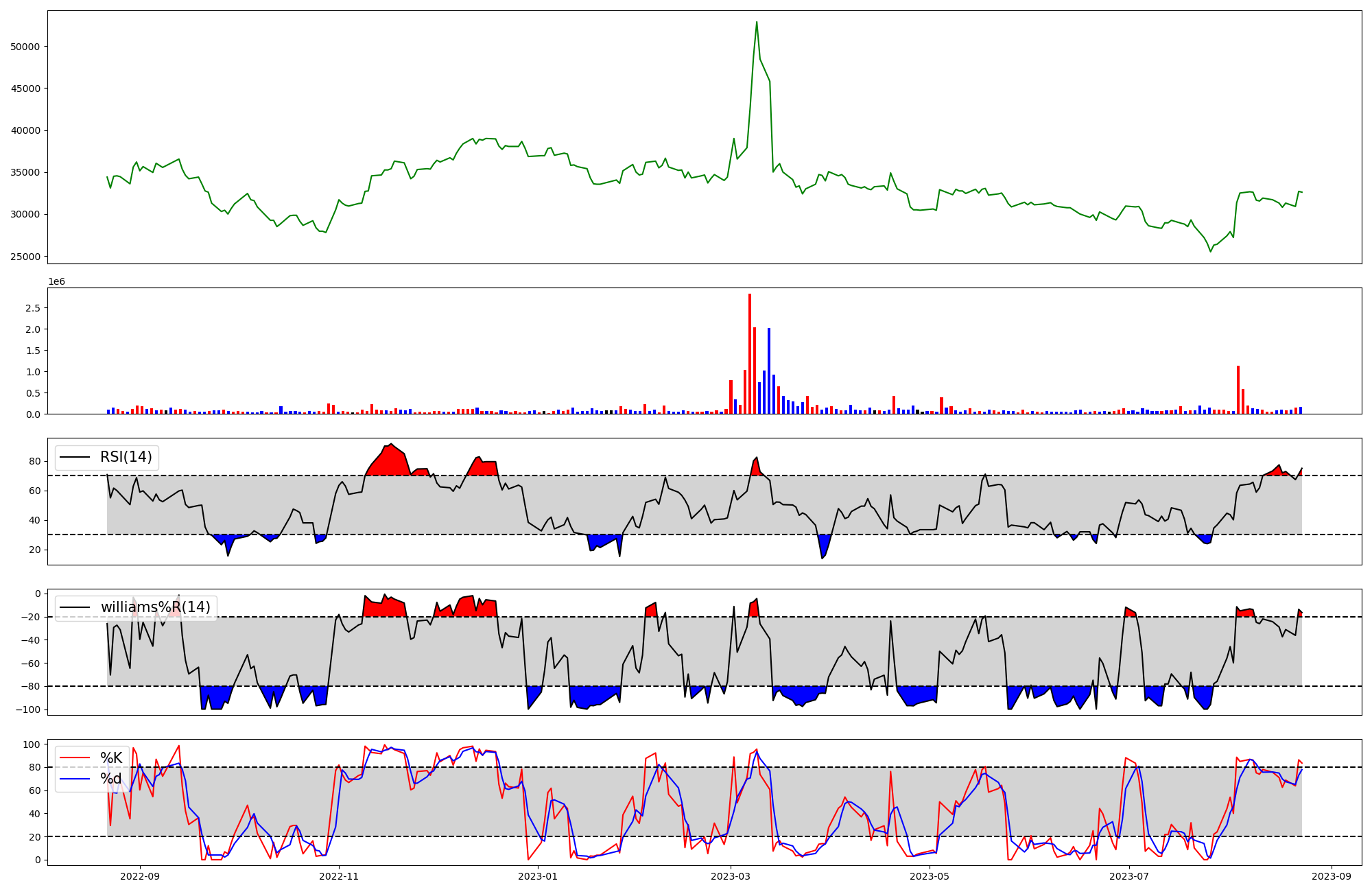 | RSI | Williams %R | stochastic(%K) | |