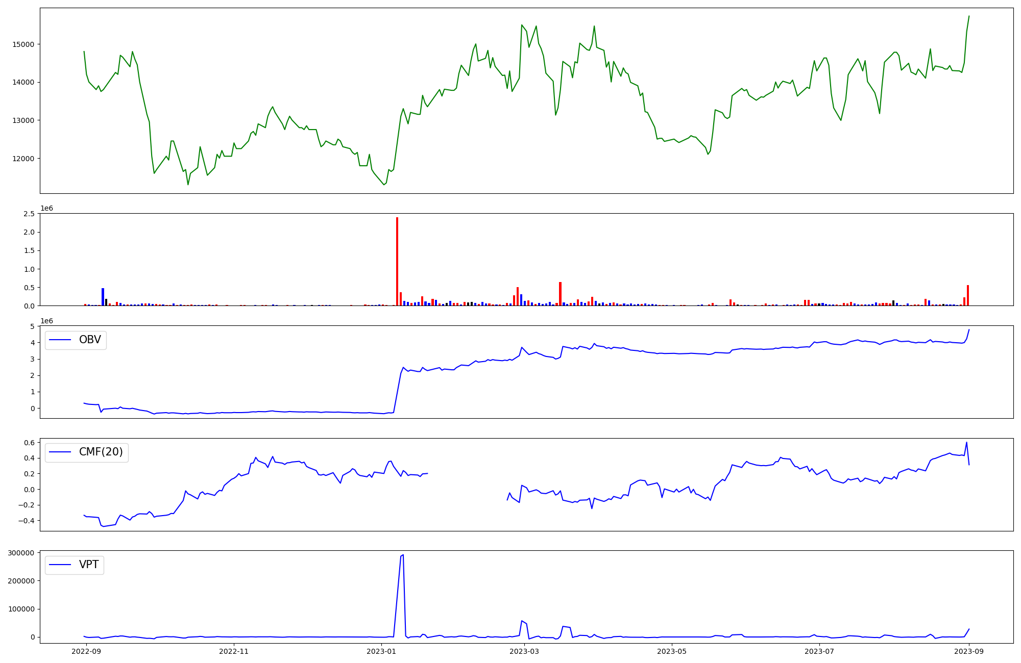 | OBV | CMF | VPT | |