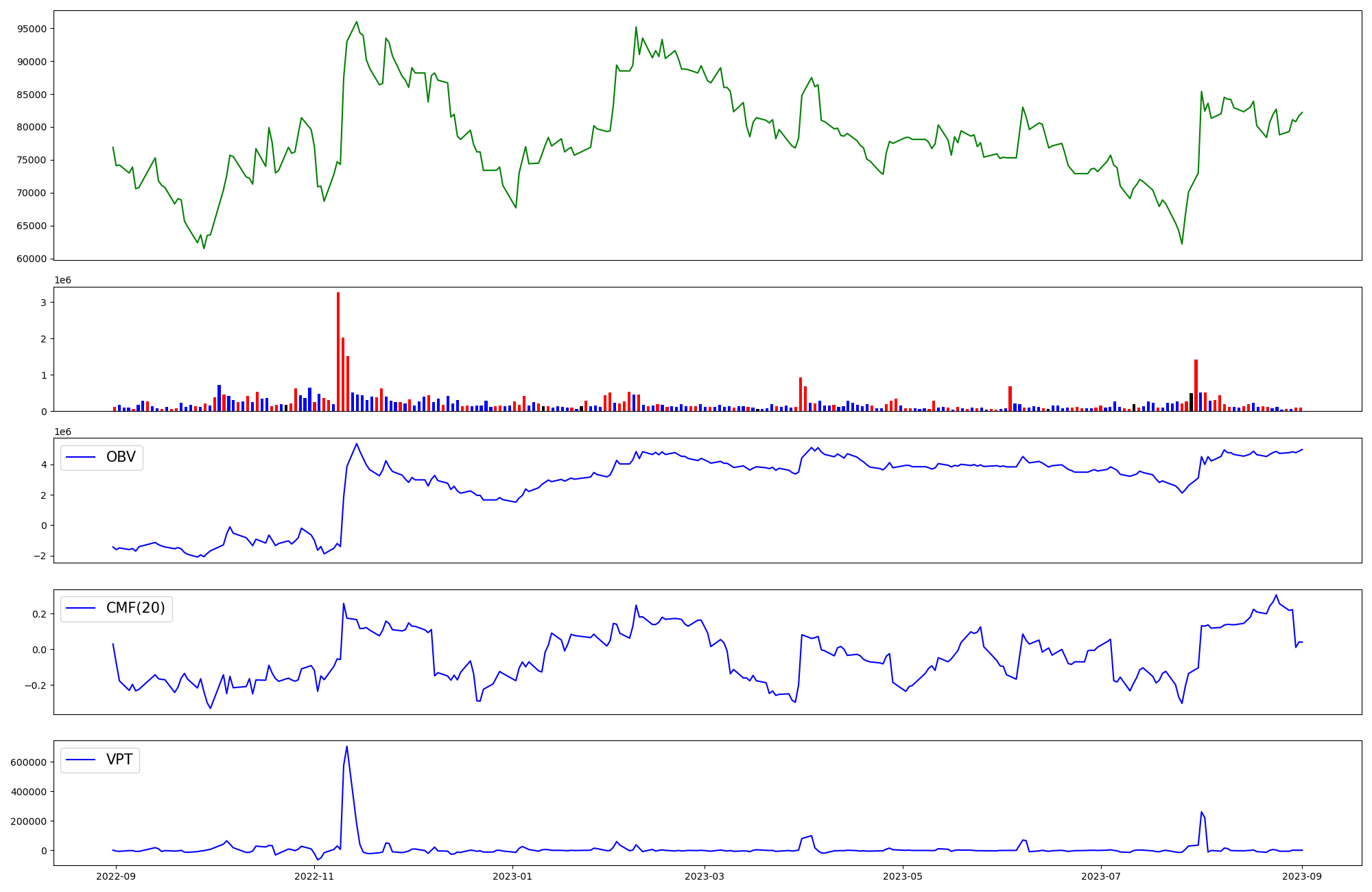 | OBV | CMF | VPT | |