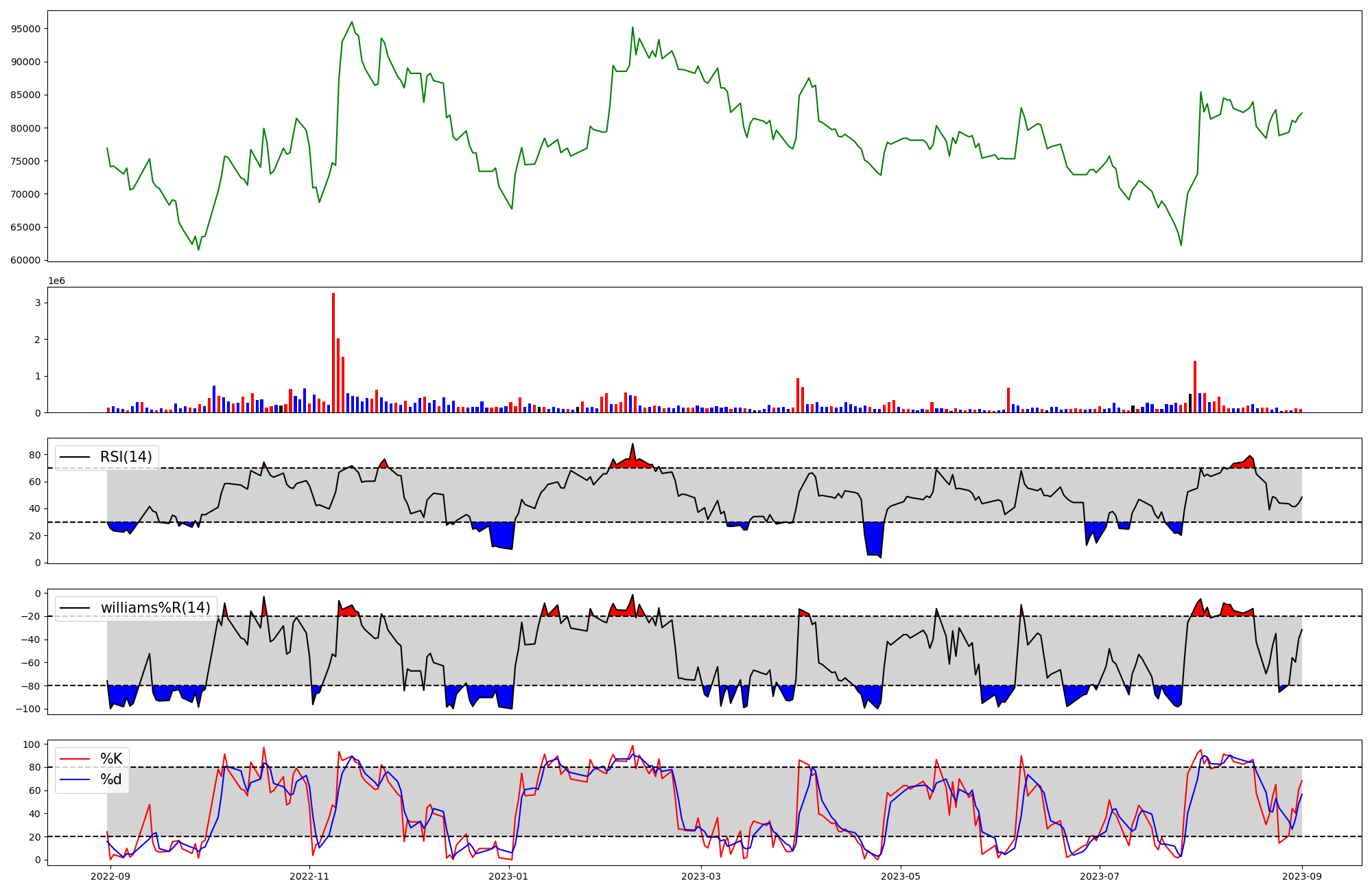 | RSI | Williams %R | stochastic(%K) | |