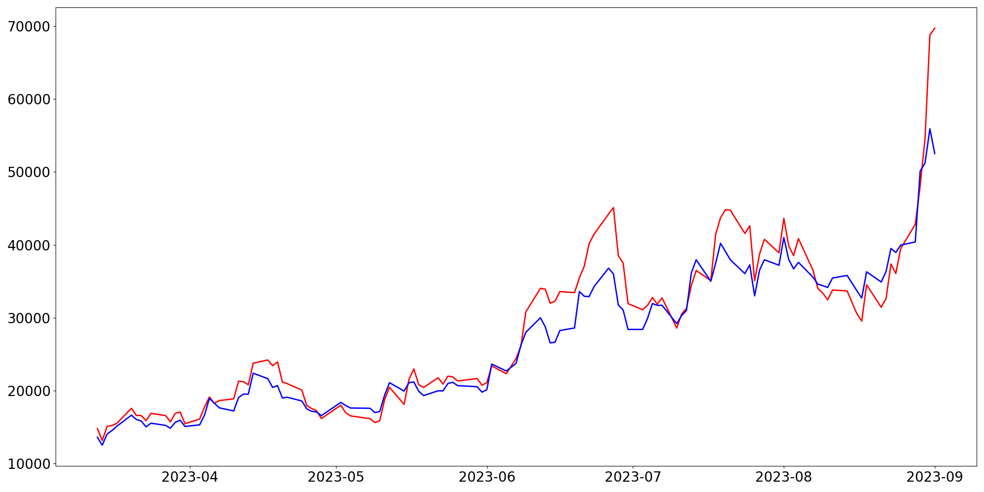 [ - : 실제값(종가) / - : 예측값(종가) ]