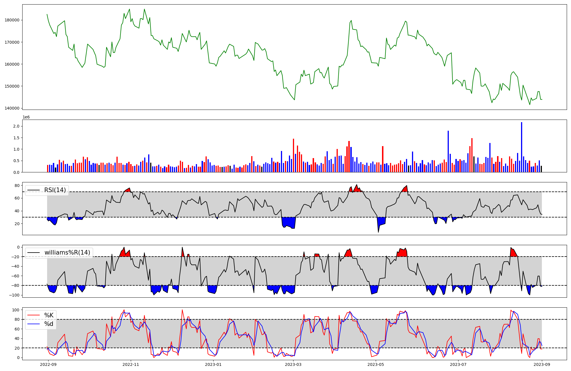 □ 중기 : 현재 종가가 중기(60일) 이동평균값(152,058원)을 하회 하여 중기적 추세 하락 중