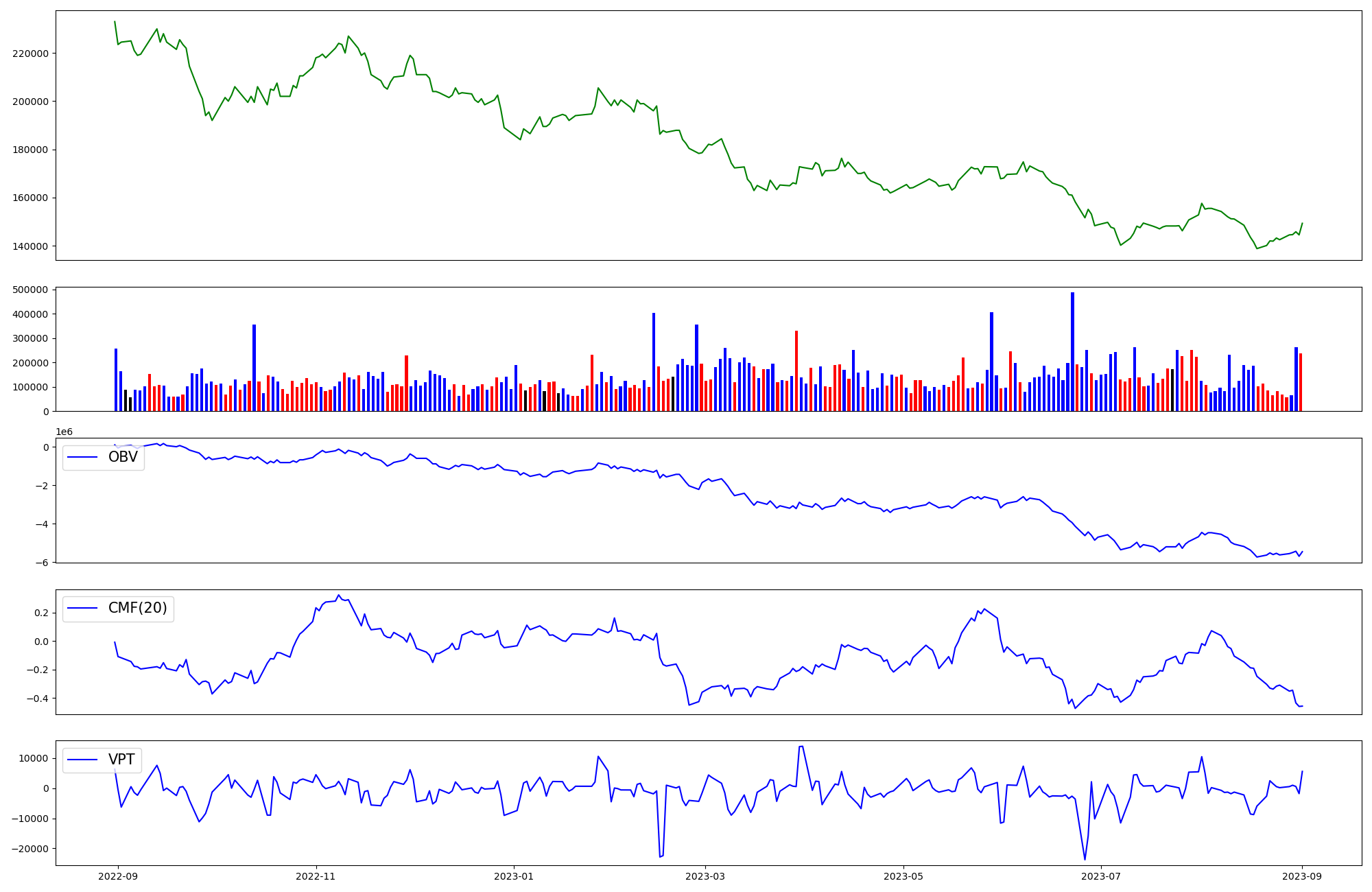 | OBV | CMF | VPT | |