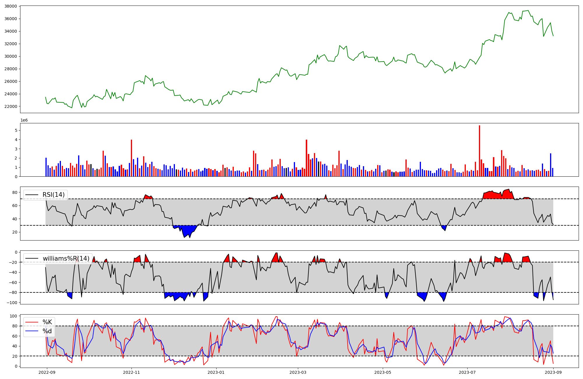 | RSI | Williams %R | stochastic(%K) | |