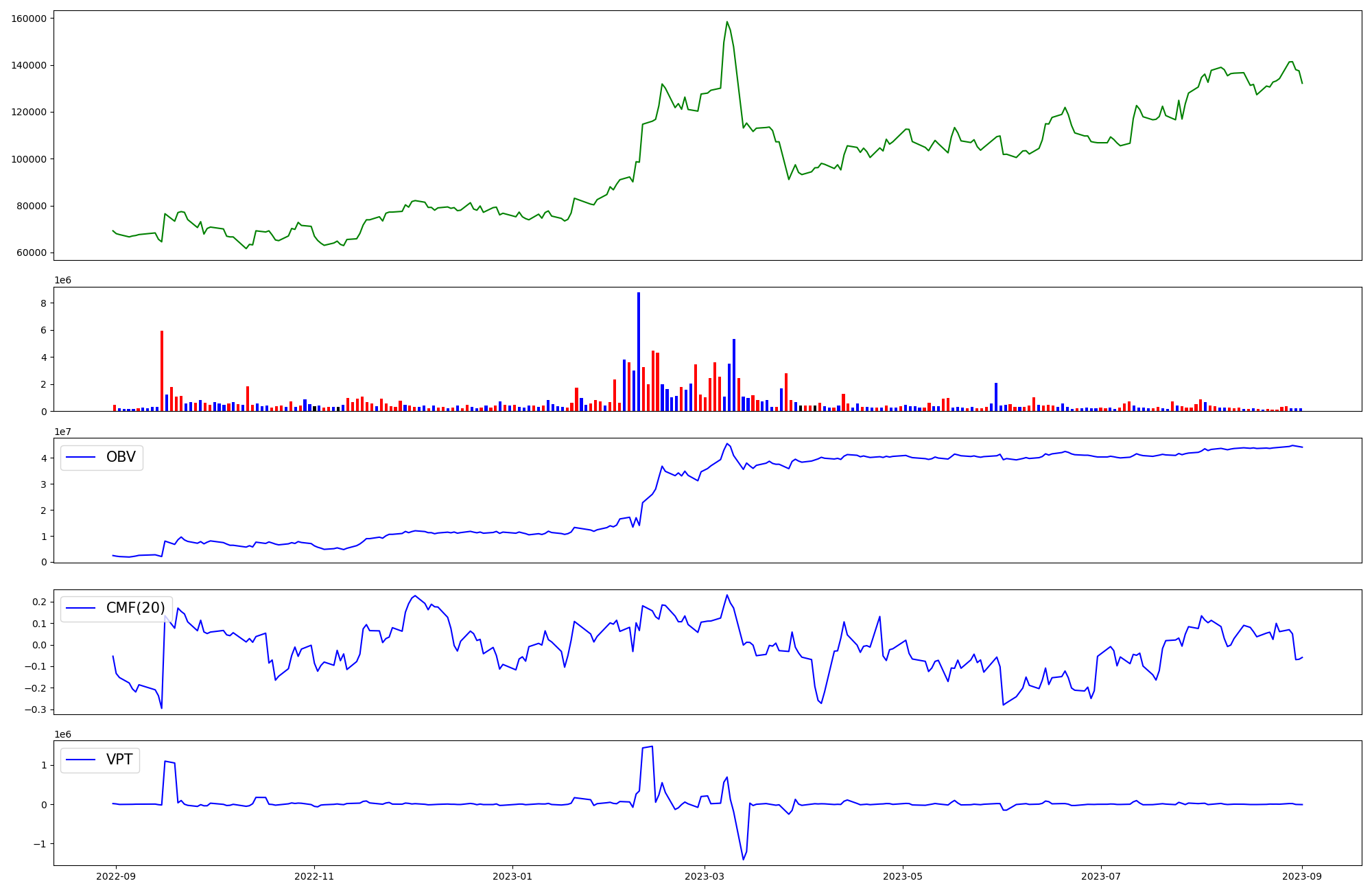 | OBV | CMF | VPT | |