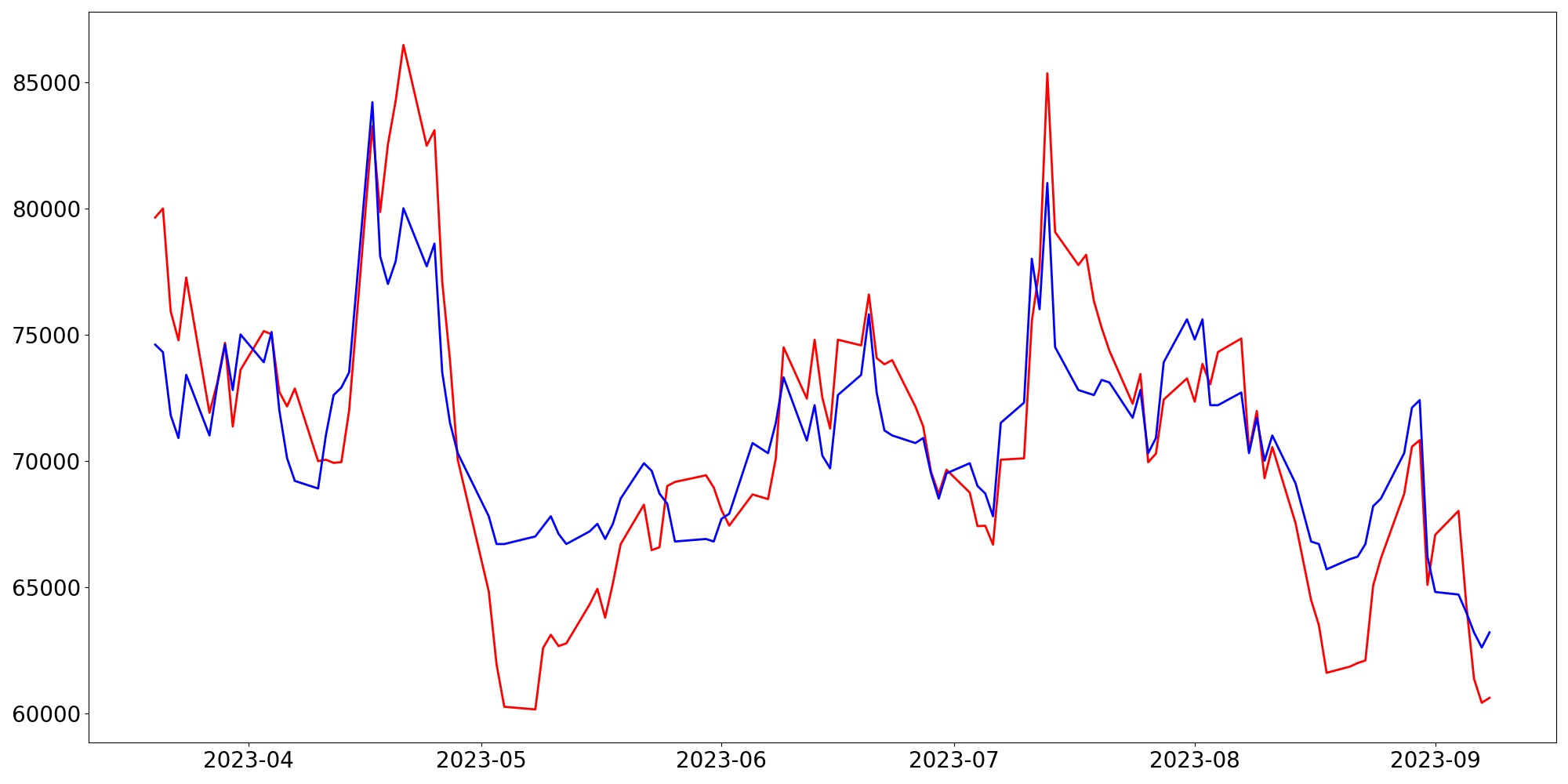 [ - : 실제값(종가) / - : 예측값(종가) ]