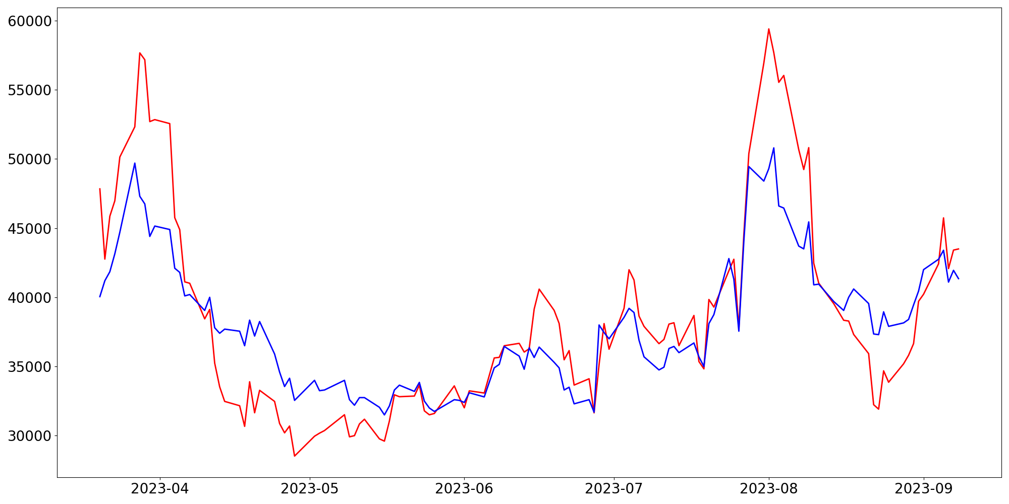 [ - : 실제값(종가) / - : 예측값(종가) ]